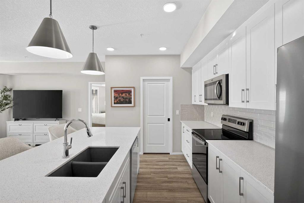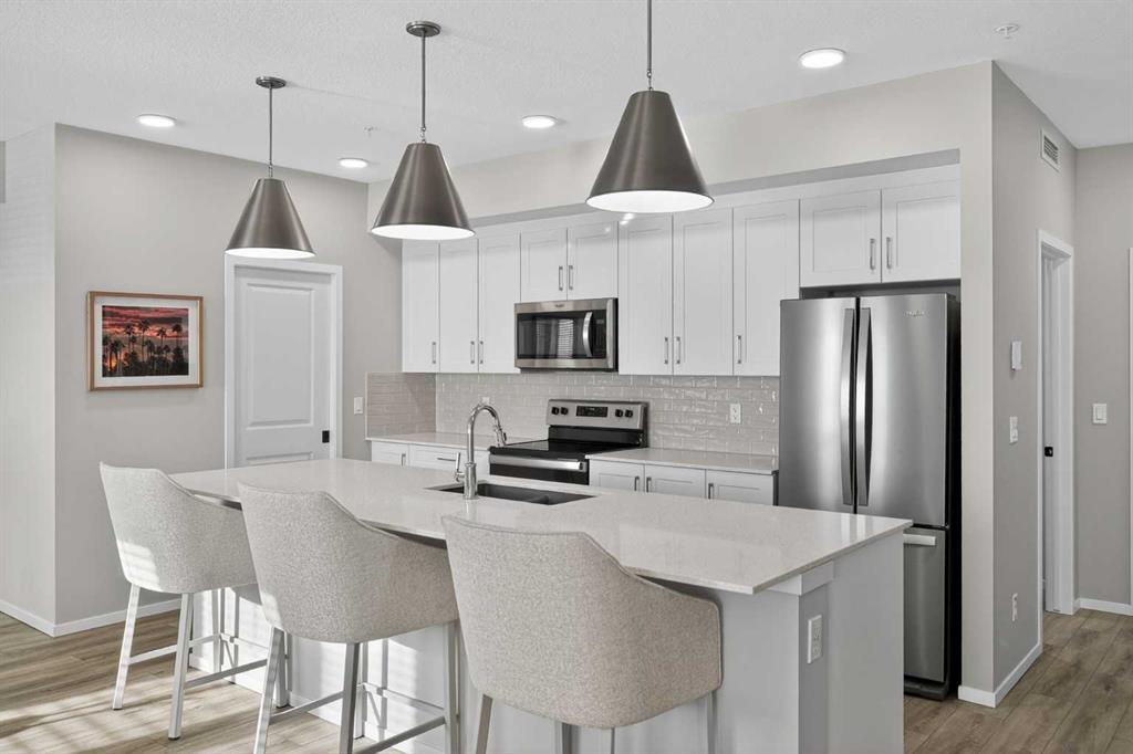 Experience the pinnacle of lake-community living in this exceptional 1,255 sq. ft. condo located in the award-winning community of Mahogany. Meticulously maintained and thoughtfully designed, this rare 2-bedroom, 2-bathroom PLUS DEN home with 2 BALCONIES offers the space and comfort of a detached residence with the ease of condo living.
