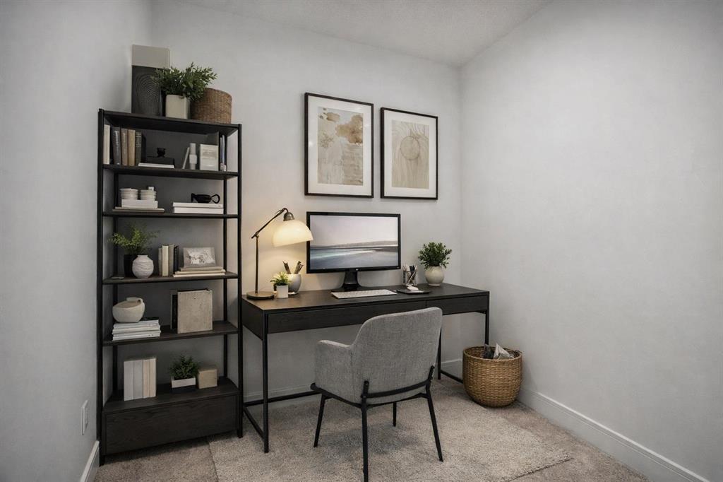 Welcome to this brand-new, never-lived-in 1 bedroom plus den condo in the prestigious Currie Barracks community—where timeless architecture meets modern inner-city living. Thoughtfully designed and finished with upscale details, this home is ideal for professionals, first-time buyers, downsizers, or investors seeking a low-maintenance lifestyle in one of Calgary’s most desirable SW locations. Step inside to discover high ceilings, luxury vinyl plank flooring, elegant crown mouldings, and oversized windows that flood the space with natural light. The open-concept layout seamlessly connects the kitchen, dining, and living areas—perfect for entertaining or everyday comfort. The designer kitchen features quartz countertops and backsplash, ceiling-height cabinetry, premium built-in stainless steel appliances, and sleek modern hardware—offering both beauty and functionality. The spacious living area flows effortlessly from the kitchen, creating a bright and inviting atmosphere. The primary bedroom is well-proportioned with large windows and ample closet space, while the versatile den is perfect for a home office, study, or guest area. The contemporary bathroom is finished with floor-to-ceiling tile, quartz vanity, and stylish fixtures, delivering a spa-inspired feel. Additional conveniences include in-suite laundry, air-conditioning rough-in, and extra storage. This unit comes with titled heated underground parking, access to EV charging stations, and a Pet-Friendly, Short-Term Rental–Friendly building, making it an excellent opportunity for both homeowners and investors. Located just minutes from Mount Royal University, Marda Loop, public transit, schools, downtown Calgary, parks, shopping, and major roadways. Currie Barracks offers an unmatched blend of walkability, green space, and urban convenience—all within a historic, master-planned community. Immediate possession available. Don’t miss your chance to own a brand-new home in one of Calgary’s most exciting inner-city developments—check out the 3D Virtual Tour link or book your private showing today!