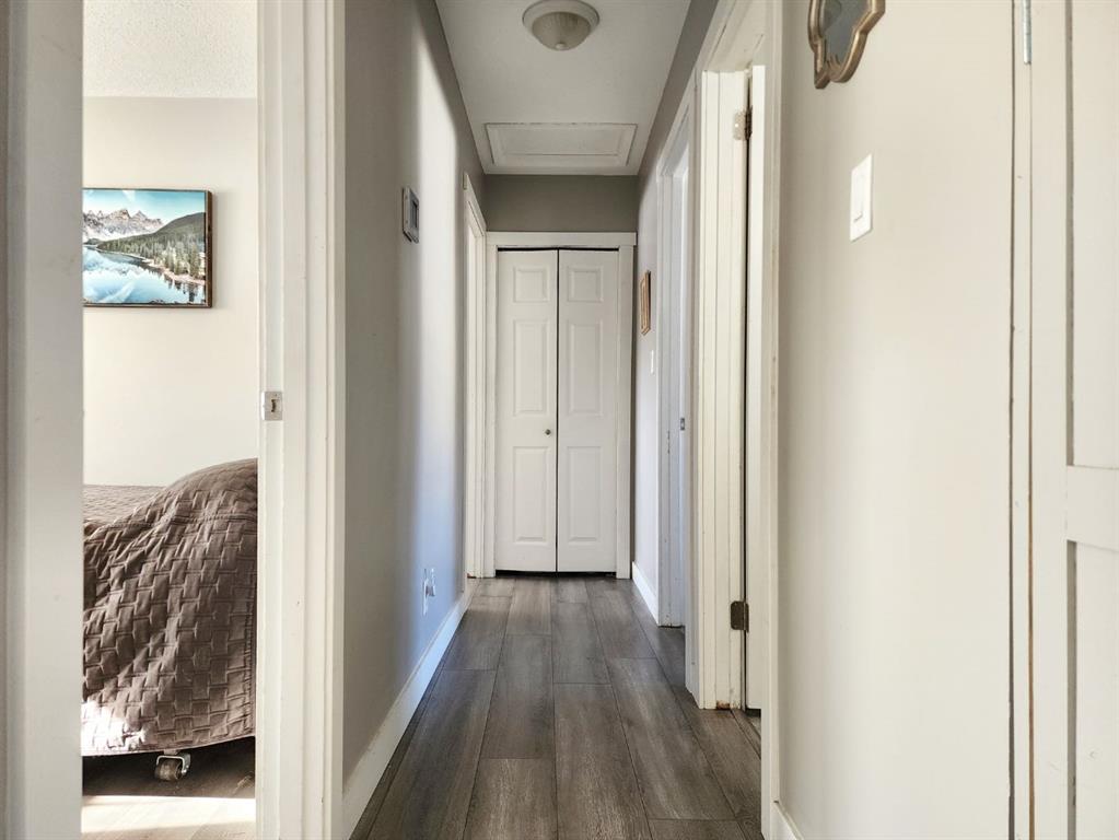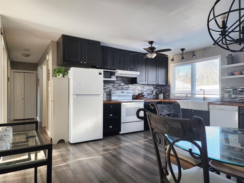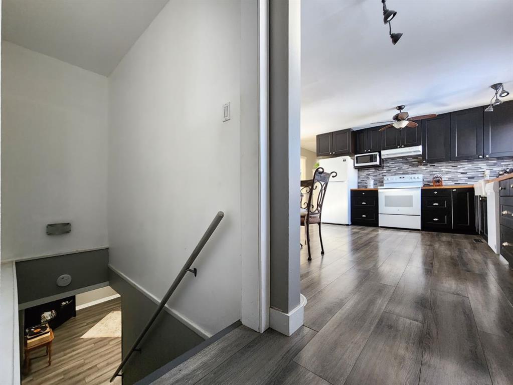 Enter from the covered carport into an enclosed mud/boot room—perfect for all seasons. From here, you’ll step into the updated, spacious kitchen featuring updated cabinetry, sink, backsplash, countertops, and appliances. The kitchen flows down the hall to three main-floor bedrooms and two bathrooms, including a convenient 2-piece ensuite off the primary bedroom. The bright living room, highlighted by a large window, provides a welcoming space to relax.