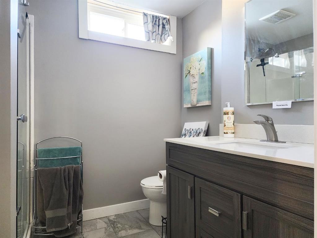 The fully developed lower level features a recreation area, den, office space, mechanical room, and ample storage, along with an updated 3-piece bathroom with a walk-in shower.