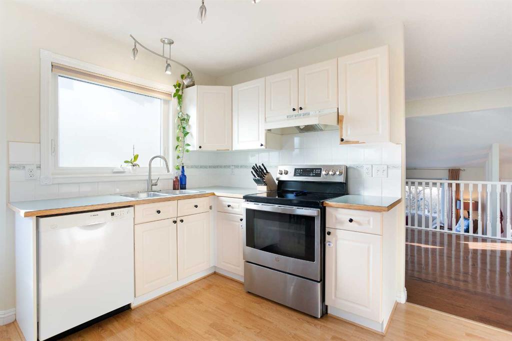 Experience the charm of this 2,640 square foot home in Airdrie’s Canals by CHECKING OUT THE 3-D TOUR! This well-maintained bi-level home features a family-friendly layout, vaulted ceilings, hardwood floors, and a finished basement. When you first walk into the home, you’ll notice a large front entry with tile floors, and a spacious living room with a gas fireplace and enough room to seat the whole family. Up the stairs, you’ll find a cozy reading nook that could also be used as a formal dining room, or home office. The kitchen offers style and function with its classic white cabinets and functional working triangle. You’ll also find an abundance of natural light, a dining nook, and a patio door leading onto your private back deck. The upper level is where you’ll also find three nicely sized bedrooms and one large 4-piece bathroom. The primary suite feels like a true sanctuary with the calming paint colours, skylight, and 3-piece ensuite (complete with a stand-alone shower and skylight). The lower level is built for entertaining with a huge flex room that features architectural coffered ceilings, newer carpeting, newer windows, built-in surround sound speakers, and a gas fireplace. You’ll also find a fourth substantial bedroom, a massive storage room, a large laundry room, and a 3-piece bathroom, adding to the charm of this stunning home. Practicality meets convenience with an insulated double attached garage and a nicely sized yard featuring an underground sprinkler system. Conveniently located near schools, playgrounds, walking paths, and parks. With fantastic access to routes in and out of the city, your commute just got easier. This is a rare opportunity to own a beautifully maintained home in an exceptional location. Be sure to CHECK OUT THE 3-D Tour. Don’t wait – book your private showing today!