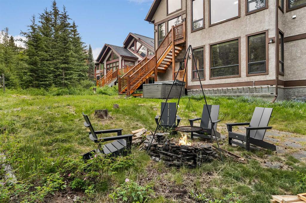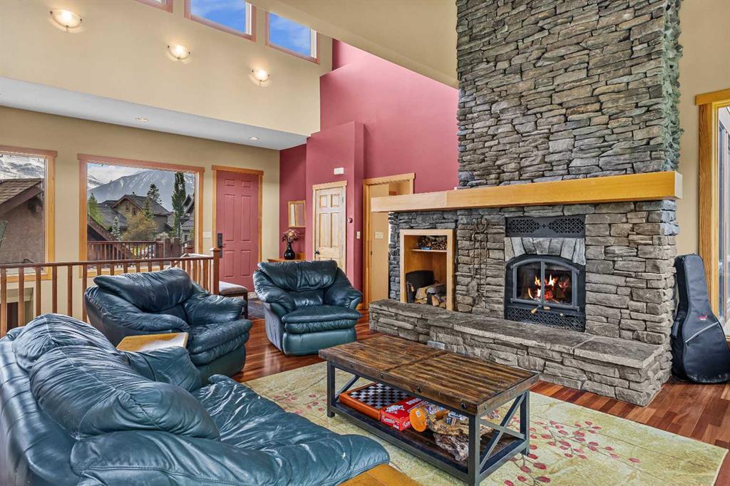 Eagle Point – Big Views! 214 Eagle Point is a stunning mountain retreat on the sunny side of Canmore. This exceptional home blends rustic elegance with modern comfort, offering breathtaking views and luxurious living across every space. Step inside to a soaring great room with stone fireplace, a gourmet kitchen and exotic hardwood floors. Large windows flood the space with natural light and frame the majestic mountain views. Enjoy the southern view from a gated wooden deck overlooking the Rocky Mountains. The rear yard backs onto an environmental reserve and offers a lush, green haven filled with evergreens, perfect for relaxing or entertaining under a clear blue sky. This home is more than a place to live—it’s a lifestyle. Whether you’re enjoying a cozy evening by the fire, cooking with a view, or soaking in the mountain air from your deck or enjoying your hot tub in the forest, this home offers the perfect blend of comfort, style, and natural beauty.