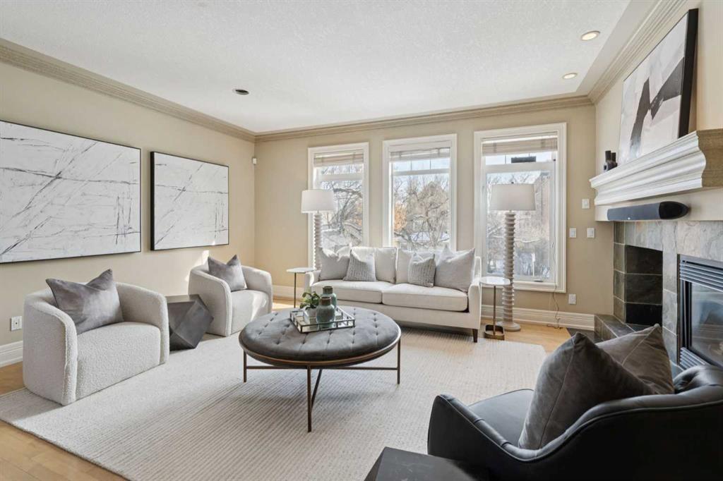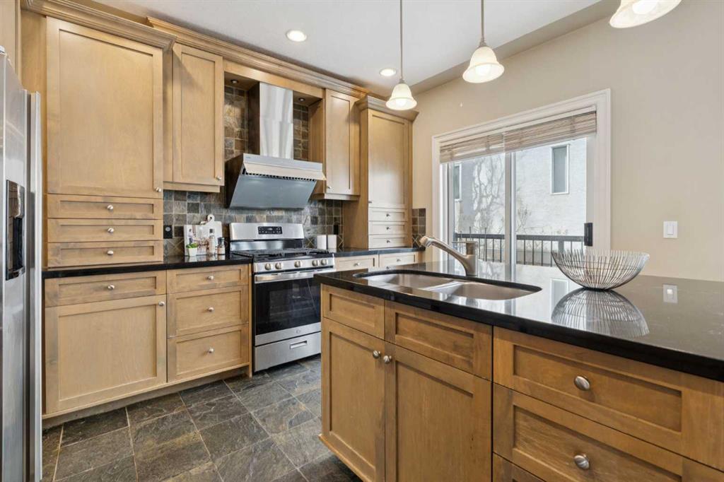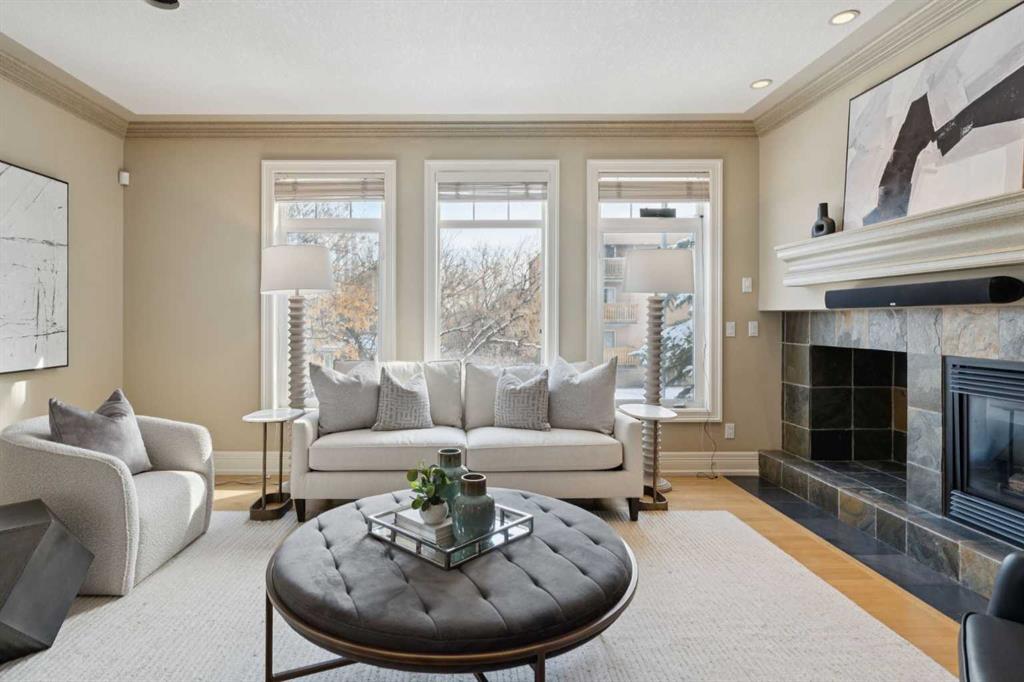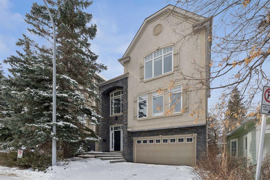 Sophisticated urban living finds its perfect expression in this thoughtfully designed home. It delivers over 2,500 square feet of bright and functional space across three inviting levels. The main floor creates an effortless flow between spacious living and dining areas. These spaces are highlighted by a striking feature fireplace wall and a dedicated TV nook, perfect for relaxed evenings or entertaining guests. Natural light pours in through oversized windows, enhancing the warm and welcoming atmosphere.At the centre of daily life is the chef’s kitchen, complete with a generous island ideal for preparing meals and gathering with friends. A sunny breakfast nook opens onto a private balcony with pleasant garden views below. Just off the kitchen sits a versatile family room, ideal as a cozy reading retreat or lively kids play area while meals are being prepared.Upstairs, the primary suite serves as a peaceful retreat featuring vaulted ceilings, a luxurious spa inspired ensuite, a spacious walk in closet, and impressive downtown city views. Two additional bedrooms and a well appointed main bathroom provide comfort and flexibility for family or visitors.The walk out basement adds valuable living space with a lower family room that opens directly onto a private terrace surrounded by low maintenance landscaping. This offers an ideal spot for outdoor relaxation or casual gatherings. Throughout the home, luxurious finishings shine through with granite counters, slate and hardwood flooring, in floor heating, and custom millwork that bring elegance and warmth to every room.A double attached garage offers convenient parking and extra storage. The walk out design maximizes light and usability on the lower level.Nestled in the vibrant Bankview community, this home sits just a short walk from the energy of 17th Avenue, filled with trendy shops, diverse restaurants, cafés, pubs, boutiques, and entertainment options. Enjoy easy access to local parks, community playgrounds and pathways. It delivers the ideal balance of inner city convenience and neighbourhood charm.