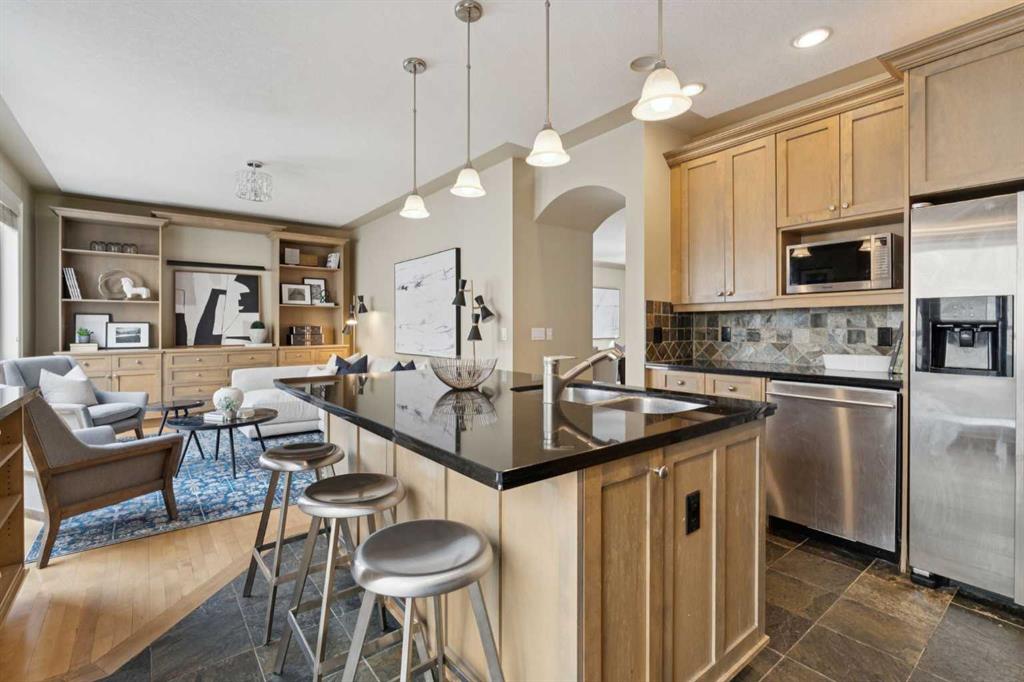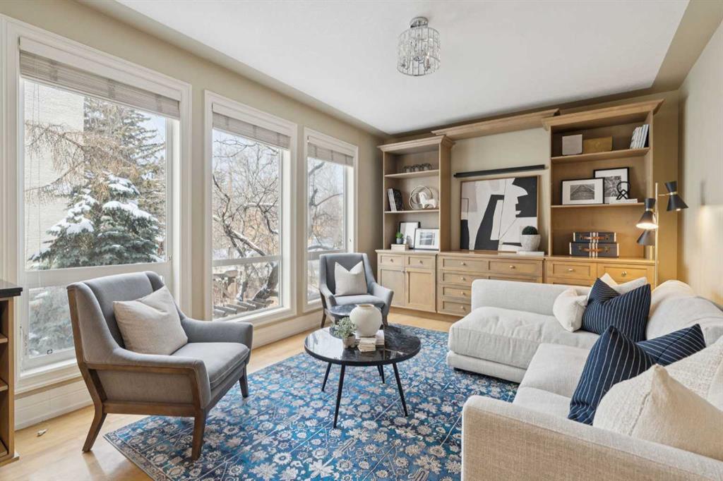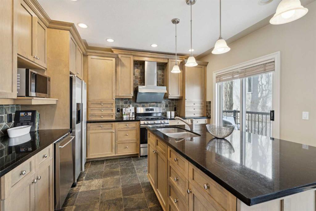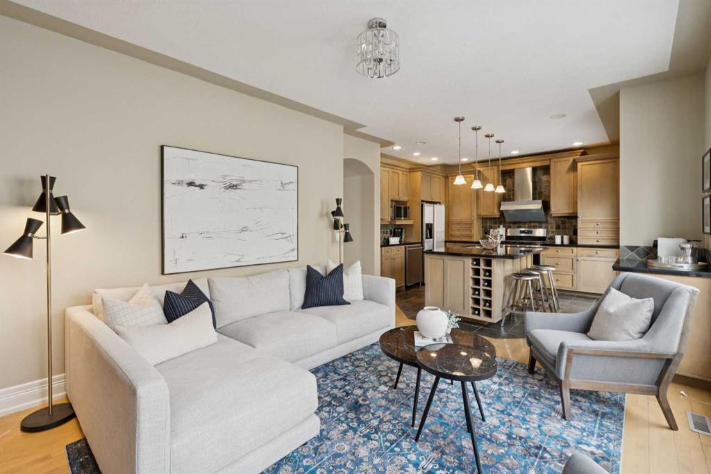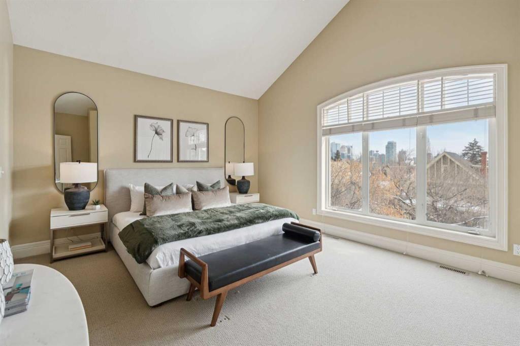 Sophisticated urban living finds its perfect expression in this thoughtfully designed home. It delivers over 2,500 square feet of bright and functional space across three inviting levels. The main floor creates an effortless flow between spacious living and dining areas. These spaces are highlighted by a striking feature fireplace wall and a dedicated TV nook, perfect for relaxed evenings or entertaining guests. Natural light pours in through oversized windows, enhancing the warm and welcoming atmosphere.At the centre of daily life is the chef’s kitchen, complete with a generous island ideal for preparing meals and gathering with friends. A sunny breakfast nook opens onto a private balcony with pleasant garden views below. Just off the kitchen sits a versatile family room, ideal as a cozy reading retreat or lively kids play area while meals are being prepared.Upstairs, the primary suite serves as a peaceful retreat featuring vaulted ceilings, a luxurious spa inspired ensuite, a spacious walk in closet, and impressive downtown city views. Two additional bedrooms and a well appointed main bathroom provide comfort and flexibility for family or visitors.The walk out basement adds valuable living space with a lower family room that opens directly onto a private terrace surrounded by low maintenance landscaping. This offers an ideal spot for outdoor relaxation or casual gatherings. Throughout the home, luxurious finishings shine through with granite counters, slate and hardwood flooring, in floor heating, and custom millwork that bring elegance and warmth to every room.A double attached garage offers convenient parking and extra storage. The walk out design maximizes light and usability on the lower level.Nestled in the vibrant Bankview community, this home sits just a short walk from the energy of 17th Avenue, filled with trendy shops, diverse restaurants, cafés, pubs, boutiques, and entertainment options. Enjoy easy access to local parks, community playgrounds and pathways. It delivers the ideal balance of inner city convenience and neighbourhood charm.