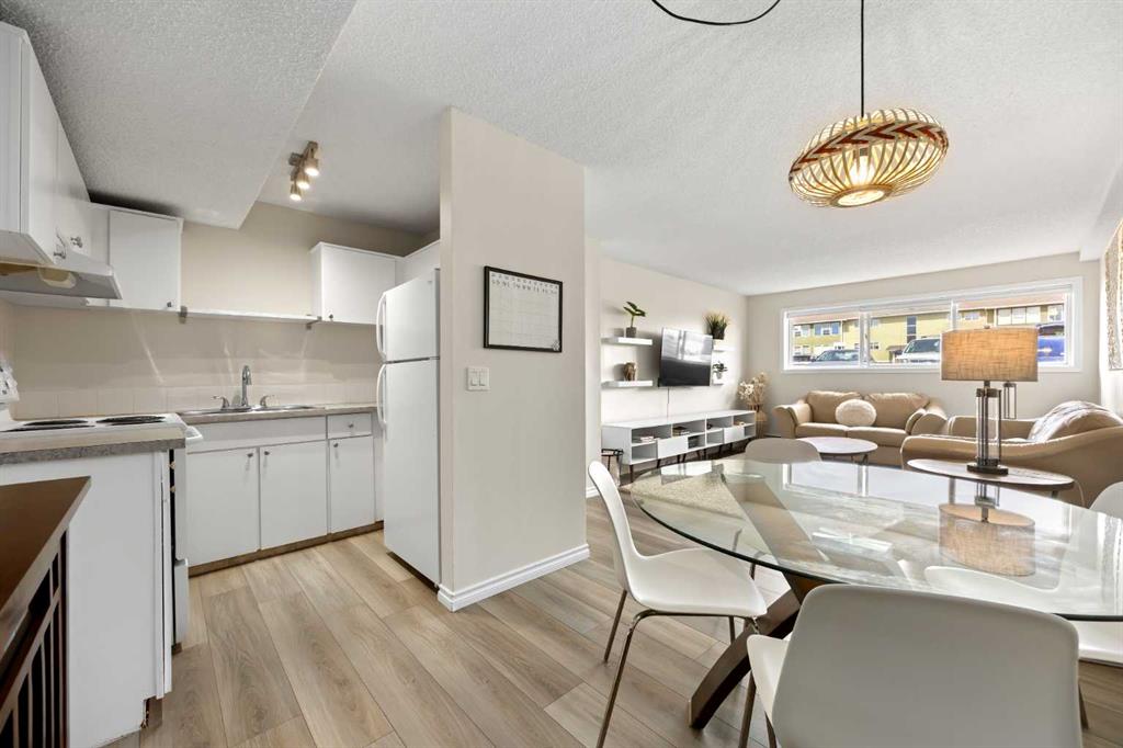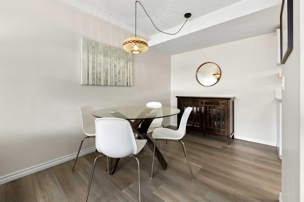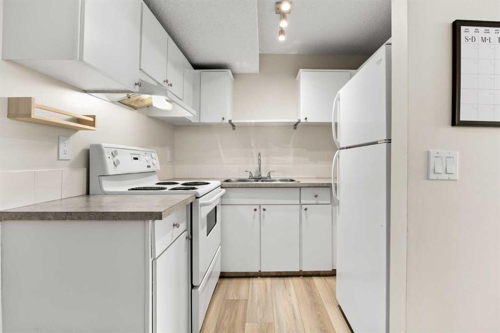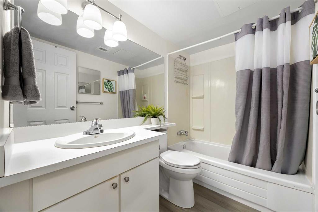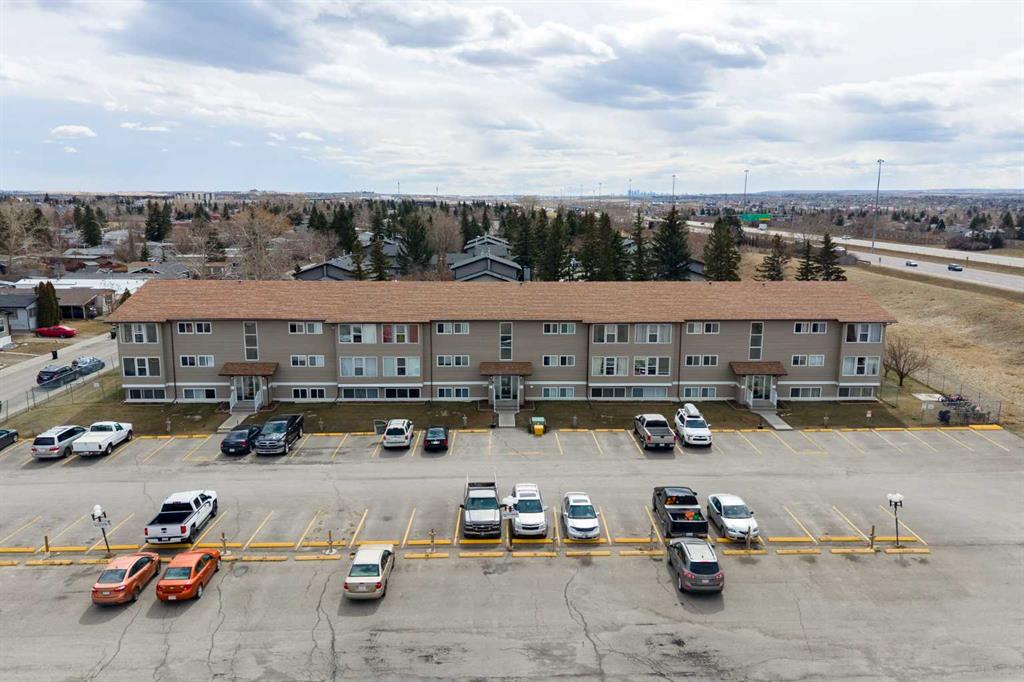 This updated 1-bedroom plus den, 1-bathroom apartment at 101 Big Hill Way offers a move-in-ready opportunity for homeowners or investors. The unit was refreshed in 2023 with new laminate flooring, lighting, fresh paint, and updated kitchen countertops and backsplash. The functional layout features a dedicated dining area, a flex/office/storage space at the entry, and a spacious primary bedroom that easily accommodates king-sized furniture. Enjoy natural cooling year-round thanks to the north-facing position. This pet-friendly home includes a parking stall directly outside the main door and ample visitor parking. Located in Big Springs, you are steps from walking paths and green spaces, and within 5 minutes of Genesis Place recreation centre, No Frills, local cafes, and the West Airdrie overpass. Schools, including Bert Church High and R.J. Hawkey Elementary, are within easy walking distance.