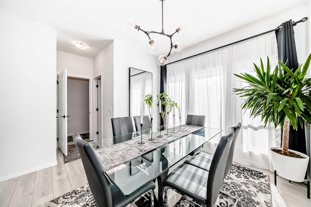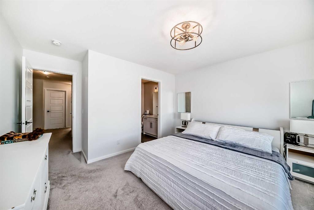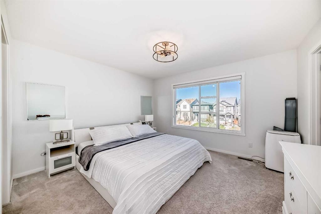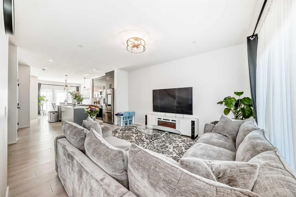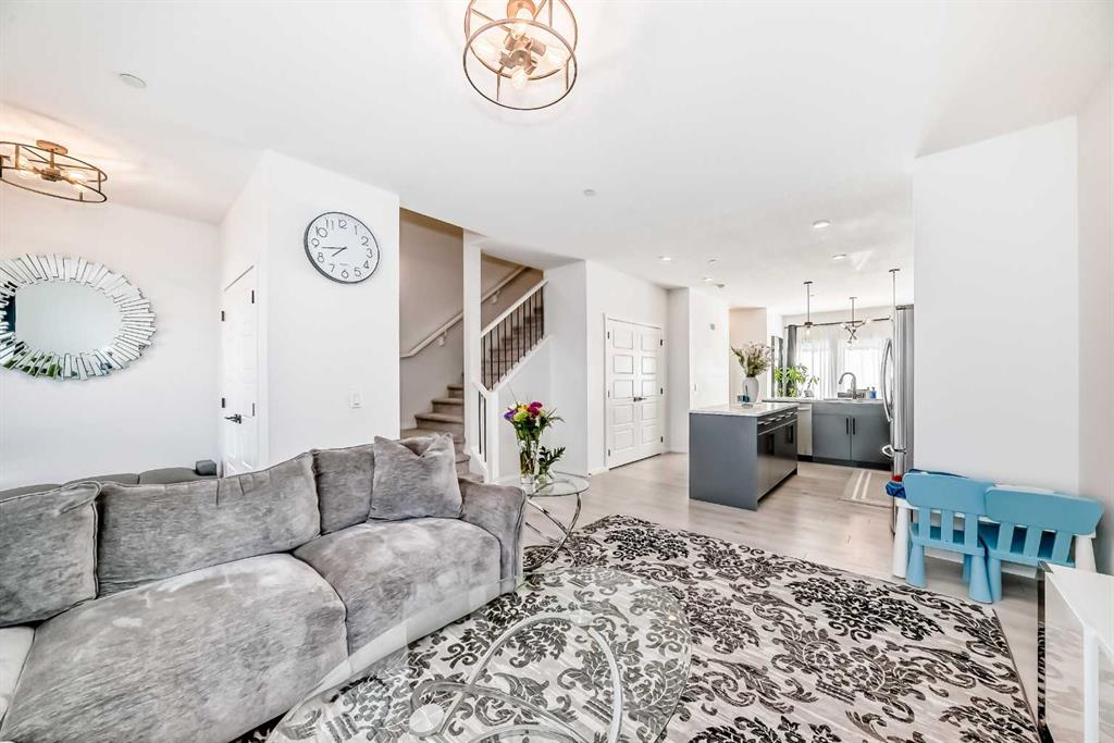 Modern & Bright 3-Bedroom Home in Desirable Livingston Welcome to contemporary living in the heart of the sought-after Livingston community! This stunning 3-bedroom home offers a modern design, stylish finishes, and a fantastic layout, perfect for a family or anyone looking for a move-in ready property with an exciting backyard space. Interior Highlights Step inside to a bright, open-concept main floor flooded with natural light. The inviting living room features a chic, neutral colour palette, beautiful flooring, and an elegant staircase, creating a sophisticated and comfortable space. The gourmet kitchen is a chef’s dream, boasting striking blue-grey cabinetry, pristine white quartz countertops, sleek stainless steel appliances (including a modern fridge with a smart display), and a large central island perfect for meal prep and entertaining. Adjacent to the kitchen, the dining room offers a stylish space for family dinners with an eye-catching light fixture and large windows overlooking the yard. A convenient and beautifully appointed powder room is also located on the main floor. Upstairs, you’ll find three generously sized bedrooms. The master suite is a true retreat, featuring a spacious layout, a large window with community views, a walk-in closet, and a private 3-piece ensuite bath. The two additional spacious bedrooms and a full main bathroom ensure comfort for everyone. For ultimate convenience, the laundry is also included on this level. Exterior & Community Features The home’s exterior boasts attractive curb appeal with its modern architecture and striking siding. The private backyard is an oasis for relaxation and fun, featuring a well-maintained lawn, a back lane for easy access, and charming raised garden beds—perfect for a home gardener! A dedicated fire pit area makes it ideal for cool Calgary evenings and entertaining guests. The Livingston community offers exceptional amenities, parks, and easy access to major routes, making it a highly desirable place to call home. Don’t miss the chance to own this exceptional property. Book your private showing today!
