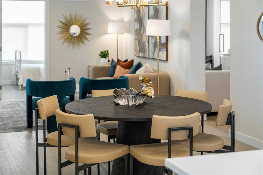 Welcome to The Edward by Partners Homes, a brand new quick possession opportunity in Keystone Creek, positioned on a premium corner lot directly across from green space. Featuring a separate side entrance and a 20’ x 21’ double detached garage, this home offers flexibility, strong curb appeal, and long-term potential in one of North Calgary’s newest communities. The main floor is thoughtfully designed for everyday functionality. A front flex room sits beside a full bathroom with a tiled walk-in shower, creating an ideal space for a private home office, study, or additional sitting area. At the rear of the home, the kitchen anchors the open living and dining areas and is finished with full-height cabinetry, quartz countertops, a large central island, stainless steel appliances, a chimney-style hood fan with built-in microwave, and a gas line rough-in for a future range. The layout flows comfortably for both daily living and entertaining. A rear mudroom adds practical organization, and a barbeque gas line is already installed for outdoor use. Upstairs, the primary suite includes a walk-in closet and a private ensuite with dual sinks and a tiled walk-in shower. Two additional bedrooms are complemented by a centrally located bonus room, offering flexible living space for a second lounge or media area. Upper-level laundry adds everyday convenience. The basement features 9 foot ceilings and rough-ins for future development, providing excellent potential to expand the living space over time. Additional highlights include knockdown ceilings, quartz surfaces throughout, completed front landscaping, and a Tudor farmhouse exterior elevation. Located in Keystone Creek, residents enjoy access to parks, wetlands, pathways, and convenient connections to Stoney Trail, Deerfoot Trail, CrossIron Mills, and YYC International Airport.