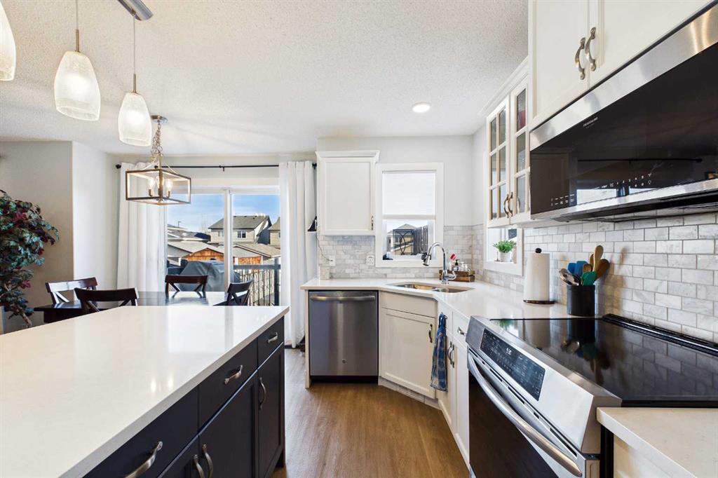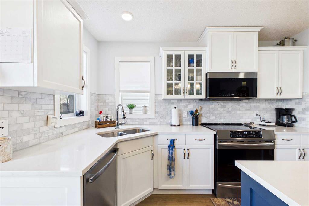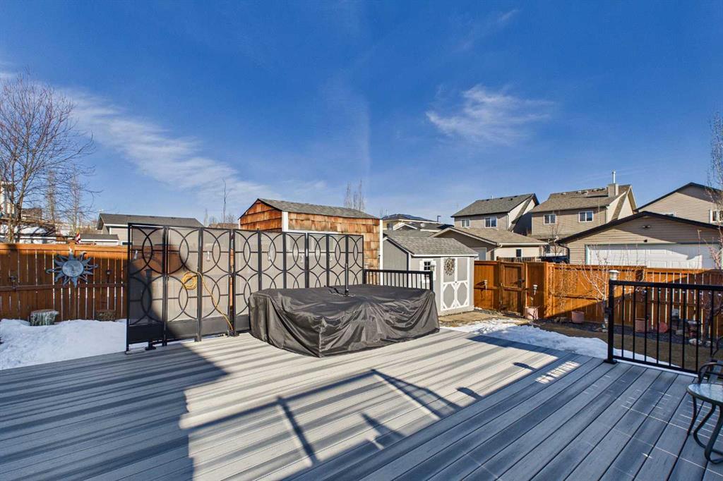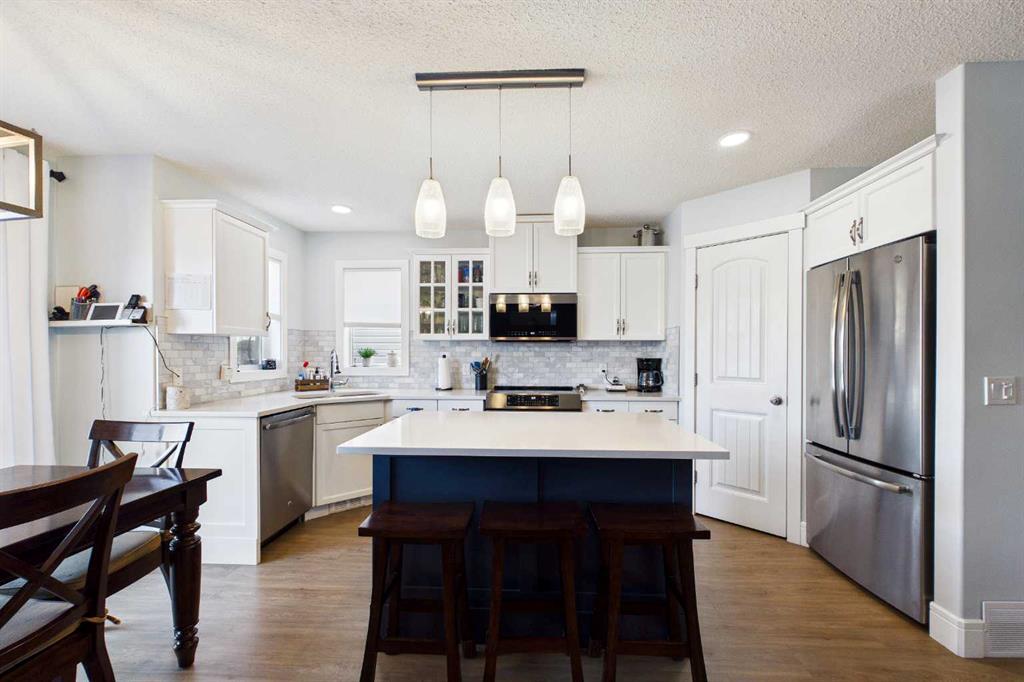 Welcome to this flawlessly renovated 1,531 sqft gem in the heart of Sagewood, Airdrie—a home that perfectly balances charm with modern sophistication. The main floor welcomes you with a bright spacious entrance and open-concept layout that has been thoughtfully updated to create a seamless flow between the stylish living areas and the gourmet kitchen. This new kitchen offers stunning white cabinets, a vibrant blue island for that pop of colour, a corner pantry, a perfectly placed sink facing the windows, quartz counters, stainless steel appliances, new lighting, backsplash, and LVP flooring. The adjacent dining area is purposeful and functional yet also provides versatility to pivot the table to entertain large gatherings on those special occasions. The living room can accommodate oversized furniture and is perfectly designed for entertaining in mind. Upstairs, three spacious bedrooms offer a peaceful retreat for the whole family including a spacious primary bedroom with a spa like ensuite and walk in closet. The fully finished basement provides the ultimate flexible space with a bedroom, bathroom, and a flex space which gives you options for a media room, gym, play area or all 3! A quaint entertainment bar offers the perfect amount of space to keep your “go to” beverages and snacks. The outdoor living space is a true showstopper, featuring massive double-tier decks designed for grand-scale entertaining or quiet morning coffees. The expansive backyard is further enhanced by convenient alley access and storage sheds, while the front-attached double car garage ensures your vehicles are protected year-round. Situated in a family-friendly community known for its winding canals and scenic pathways, this home offers a rare combination of turnkey interior luxury and an outdoor oasis that is hard to find.