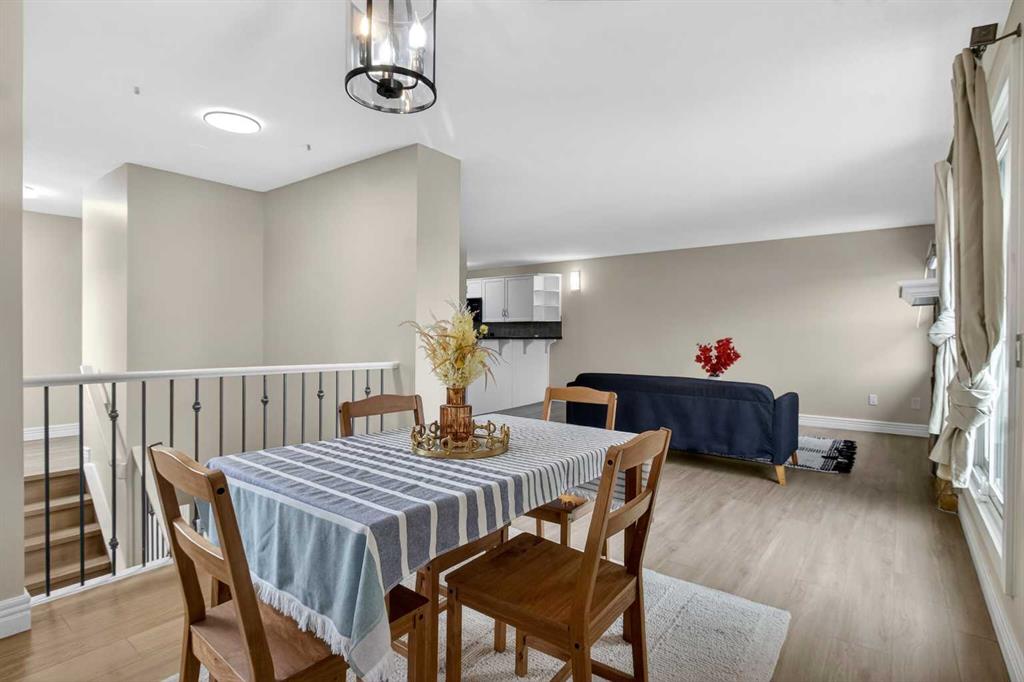 Step into comfort and convenience in this beautifully maintained 2-storey townhome tucked away in the quiet, well-managed community of Glamis Green. This unit has been touched up with all fresh paint, brand new LVP flooring throughout the home, the full bathroom has been fully renovated with all brand new amenities, kitchen is supplied with brand new stove and dishwasher. On the main floor there are 2 good-sized bedrooms, a full bathroom and laundry room. The primary bedroom has a private balcony, your own quiet outdoor retreat for morning coffee or evening winding. Going upstairs to find a huge open living room with large windows and abundant natural light. A sliding door opens to an outdoor patio with mountain view. Spacious dining area with a cozy gas fireplace. Kitchen with ample cabinetry space and a convenient 2-piece bathroom ideal for guests or busy mornings. The attached single garage provides secure parking, extra storage and year-round convenience. Private front patio offering additional outdoor living space. Situated in the heart of Glamorgan, this home keeps you close to everything: Westhills & Signal Hill shopping centres, Mount Royal University, Glenmore Reservoir pathways and parks, Transit routes and major roadways, Schools, playgrounds, and green spaces. This is the townhome everyone will be talking about — act fast!