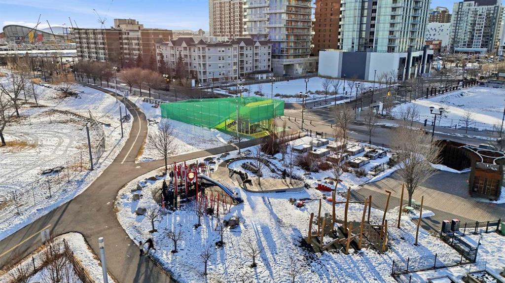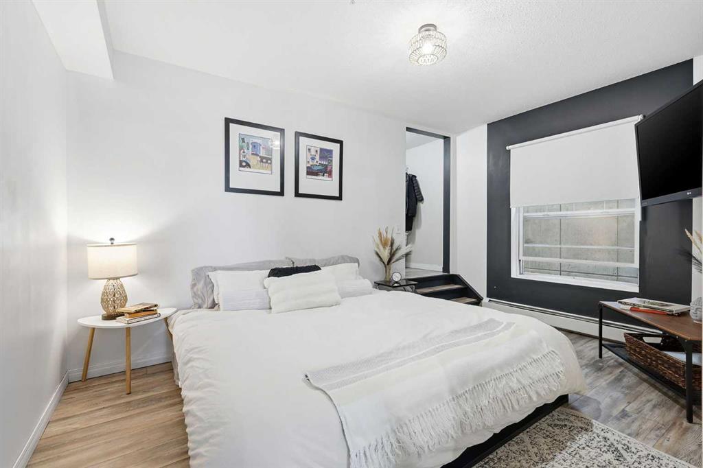 WELCOME – TO YOUR SPACIOUS CORNER UNIT in EAST VILLAGE – one of Calgary’s most evolving communities. With 795 Square Feet, your new home in “RIVER TWIN” offers a noticeably more comfortable layout than many new builds. Both bedrooms are large enough to comfortably fit a KING-SIZED BED — making the layout ideal for roommates, guests, or a dedicated HOME OFFICE setup. The kitchen and bathroom have been FRESHLY UPDATED with new MATCHING QUARTZ COUNTERTOPS, creating a brighter, more cohesive feel throughout the OPEN-CONCEPT LIVING AND DINING AREA. HARD-SURFACE FLOORING THROUGHOUT (NO CARPET) adds durability and ease of maintenance, while IN-SUITE LAUNDRY + STORAGE UNIT (on your floor) enhances everyday livability. As a CORNER UNIT, the home benefits from ADDED PRIVACY (only 1 common wall) and NATURAL LIGHT. The BALCONY offers a quiet outdoor retreat — perfect for fresh air, container plants, or evening downtime. HEATED UNDERGROUND PARKING plus your CONDO FEES INCLUDE ALL UTILITIES — HEAT, WATER, GAS, AND ELECTRICITY. This RARE ALL-IN STRUCTURE provides exceptional cost certainty whether you’re a home owner or investory seeking long-term profitability in this AIR BnB / Short Term Rental friendly building. The building itself is much LOWER DENSITY than you’ll find in the area as it is only 5 floors and is primarily composed of TWO-BEDROOM RESIDENCES. The LOCATION has a lot to offer with the New CALGARY FLAMES ARENA and entertainment district opening in Fall of 2026, Fort Calgary park across the street, and you’re just steps to the BOW RIVER PATHWAYS not to mention your conveinetly close proximity to DOWNTOWN. PET-FRIENDLY (WITH RESTRICTIONS), FLEXIBLE POSSESSION AVAILABLE, and has had the SAME OWNER FOR approx 15 YEARS — this is a WELL-ROUNDED OPPORTUNITY for buyers seeking SPACE, LOCATION, AND COST CERTAINTY in the downtown core. OPEN HOUSE this SUNDAY, Feb 1st from Noon – 2PM!