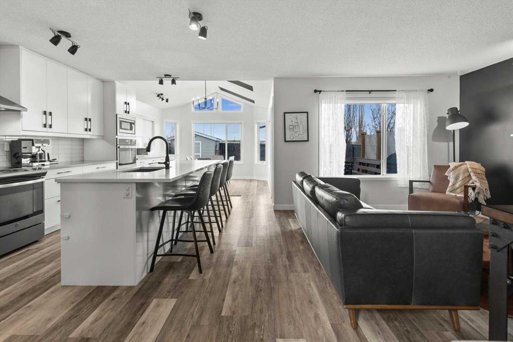 Welcome to 2,265 square feet of lovingly maintained and beautifully upgraded living space nestled in the heart of Coventry Hills, one of NW Calgary’s most established and warmly welcoming communities. This exceptional home blends thoughtful renovations, carefully chosen modern finishes, and a truly private outdoor setting to deliver a lifestyle that feels both elevated and effortlessly comfortable from the moment you first arrive. Curb appeal sets the tone immediately and makes a lasting impression. Brand new shingles, fresh new siding, a striking new front door, a new back door, and stunning Gemstone lighting make this home shine with pride in every season. It is the kind of polished street presence that turns heads and sets expectations high, and the interior delivers on every single one of them. Step inside and you are welcomed by a bright, open main floor freshly painted in 2026 and filled with beautiful natural light. The heart of this home is an extraordinary kitchen renovation showcasing custom cabinetry, gleaming quartz countertops, a stunning backsplash, built-in wall oven, a built-in microwave, and a premium graphite appliance package including a brand-new fridge and a Bosch dishwasher. A massive island anchors the space perfectly, ideal for entertaining guests, enjoying casual family dinners, or hosting relaxed weekend brunches with the people who matter most. A custom built-in workstation flows seamlessly into the oversized eating area, where a dramatic vaulted ceiling soars overhead and two generous skylights pour warm natural light into the room. Upgraded lighting throughout adds warmth, sophistication, and polish to every corner of this beautiful home. Upstairs, the generous primary bedroom provides a peaceful sanctuary complete with a full ensuite and a walk-in closet featuring custom built-ins. Two additional well-sized bedrooms, each with custom closet organizers & new blackout blinds, offer a restful and cozy retreat for family members or overnight guests. Every detail has been considered with both comfort & lasting practicality in mind. The developed basement expands your living options with ease & flexibility, offering a spacious media area perfect for movie nights, an additional bedroom, and a full bathroom, making it ideal for teenagers, visiting guests, or a quiet home office escape. Step outside and discover your own private backyard sanctuary with no direct neighbours behind you. The large deck features a thoughtfully added privacy wall. This outdoor space is one you will truly treasure season after season and is ideal for hosting summer barbecue’s, watching the kids play, or simply unwinding in the evening quiet with a cold drink in hand. Coventry Hills offers scenic pathways, beautiful parks, top-rated schools, and every everyday amenity within easy reach. Whether you are a growing family, a young professional, or simply someone who appreciates a meticulously maintained and a move-in ready home, this is the one you have been waiting for!