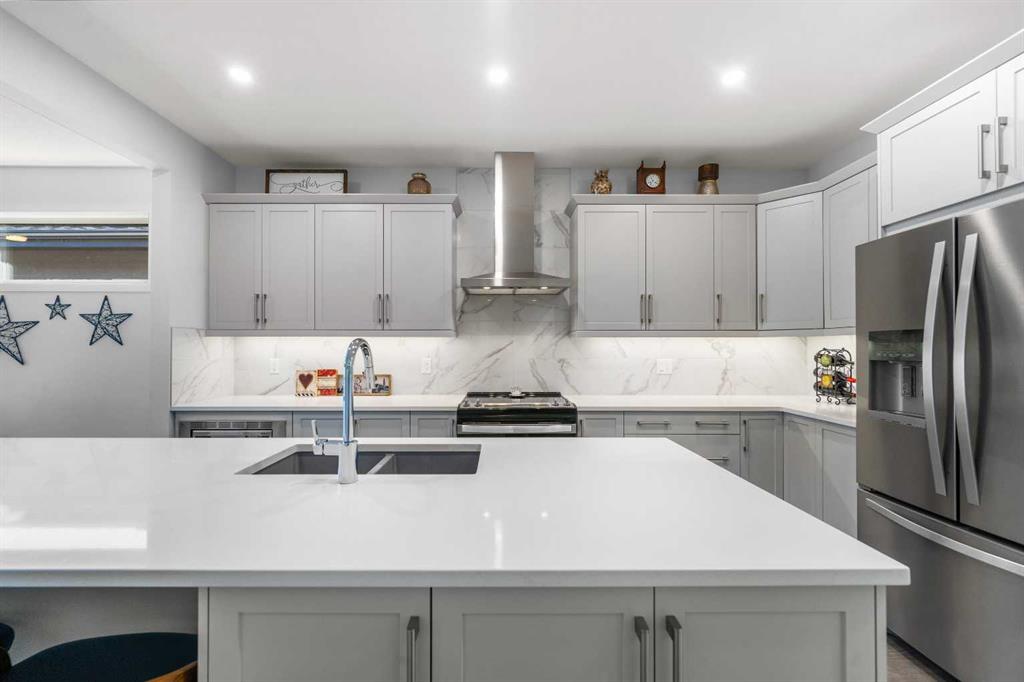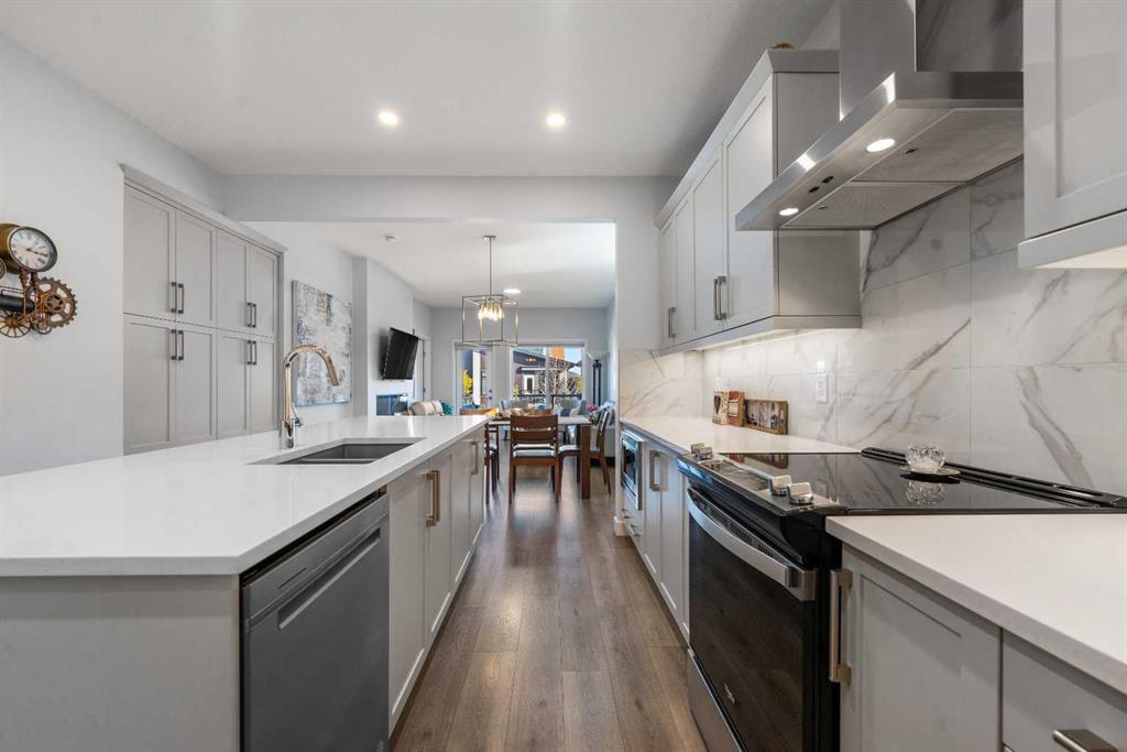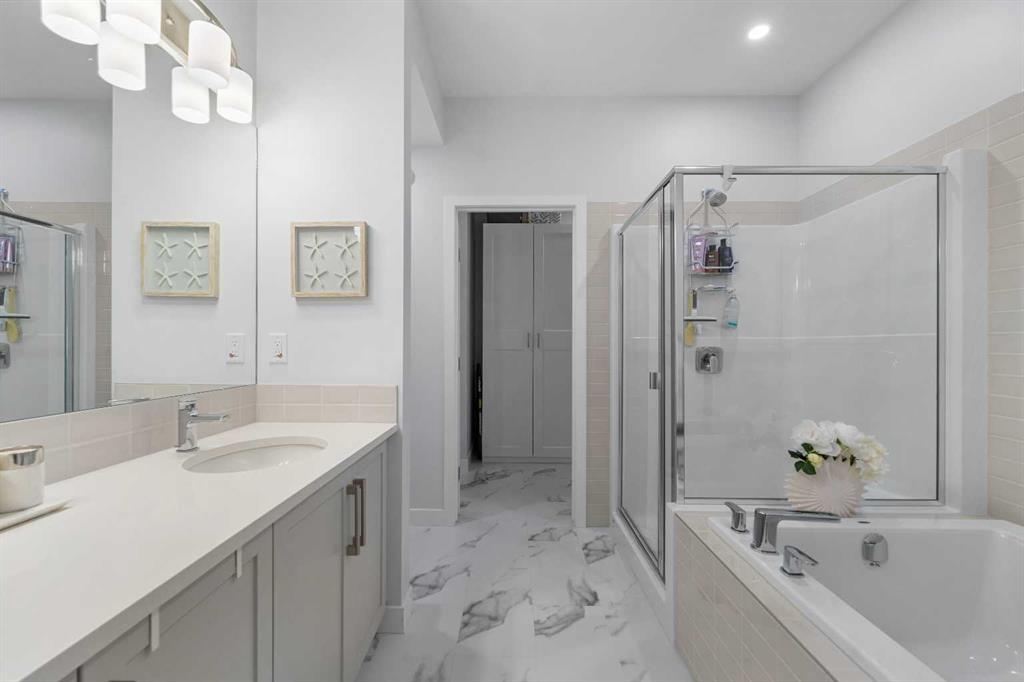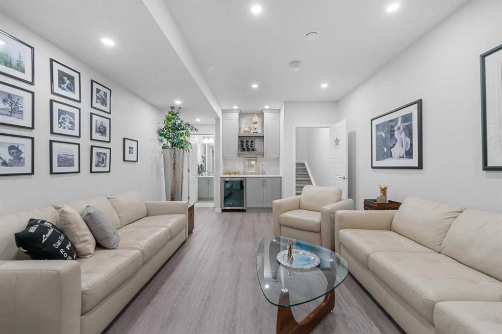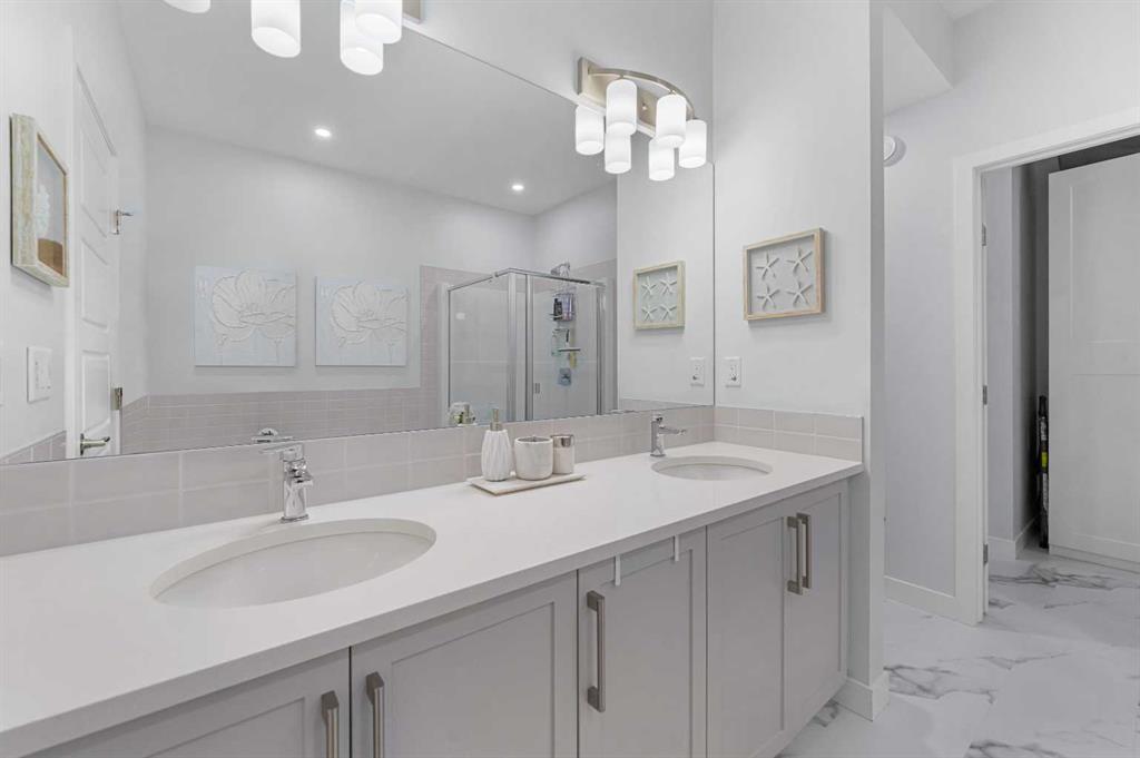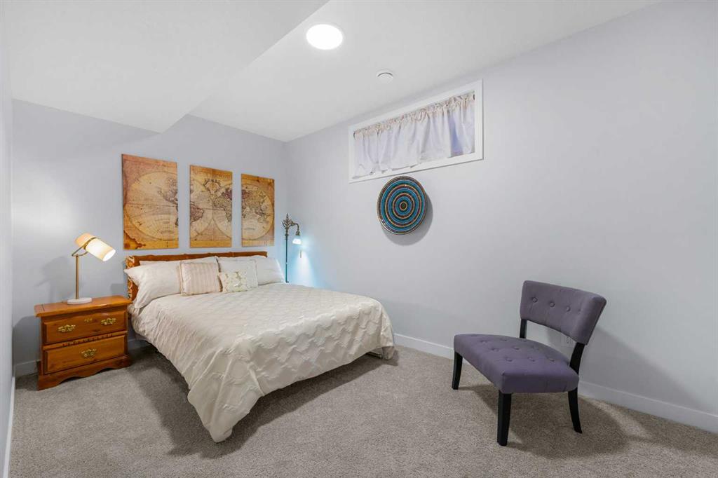 Welcome to THE STREAMS of Mahogany, a must-see lakeside complex community where everyday living feels elevated. Perfectly positioned directly on to the center park, this 3 bedroom bungalow duplex is set within a quiet and picturesque lake community offering an exceptional walking score. Scenic pathways, neighbourhood paths, and lush green spaces surround the home, while shops, services, and amenities are all just steps away. One of the most alluring features of this home is its peaceful setting and sun-filled mornings. Natural light pours in as the day begins, making coffee on the deck a refreshing daily ritual. The thoughtfully designed landscape and flowing water features enhance the overall vibe, creating a setting that is as calming as it is visually stunning. Inside, the floor plan is immediately inviting, showcasing soaring 9 foot ceilings and a spacious open-concept design. The kitchen is both striking and functional, featuring stone countertops, sleek stainless steel appliances, a large centre island, and an abundance of cabinetry. The living room is warm and welcoming, anchored by a modern electric fireplace and framed by beautiful windows. The primary bedroom is conveniently located off of the family room and offers and unforgettable ensuite that is nothing short of captivating. Dual vanities, a deep soaker tub, a stand-alone glass shower, and a generous walk-in closet. Throughout the home, you’ll appreciate the exceptional number of cupboards and closets; a rare and valuable feature, especially in newer homes. The fully finished lower level adds versatility, offering a large entertainment and recreational space complete with a stylish bar area, effective acoustic insulation, and substantial additional storage. 2 spacious guest bedrooms and a full bathroom make this level ideal for hosting family and friends while maintaining privacy and comfort. Enjoy all the advantages of condo living without the annoyance of condo living – No elevators, noise, or parking frustrations. The double attached garage ensures year-round convenience, while the community’s communal BBQ and gathering areas foster a welcoming sense of connection through neighbourhood events and casual social gatherings. Built with efficiency and sustainability in mind, this home includes solar panels, triple-pane windows, a high-efficiency furnace with MERV 13 filtration, UV-C air purification system, HRV, Navien tankless hot water, dual-zone heating, EV charging rough-in, and Built Green Canada certification — offering modern comfort and long-term peace of mind. This is a lifestyle defined by space, serenity, and sophistication. Welcome home!