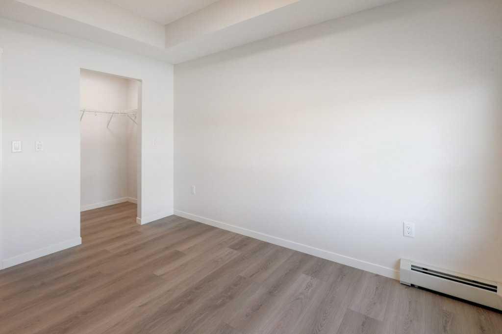 INTRODUCING GLACIER RIDGE, IN BEAUTIFUL NORTHWEST CALGARY. BUILT BY CEDARGLEN LIVING, WINNER OF THE Customer Insight BUILDER OF CHOICE AWARD, 6 YEARS RUNNING! BRAND NEW “GR04” unit with high-spec features. You will feel right at home in this well thought-out, 590.72 RMS sq.ft. 1 bed, 1 bath home with open plan, 9′ ceilings, LVP flooring throughout (NO CARPET), Low E triple glazed windows, BBQ gas line on the patio, Fresh Air System (ERV), A/C rough-in, and so much more. The kitchen is spectacular with full height, two tone cabinets, quartz counters, upgraded bank of drawers for pots and pans, undermount sink, rough-in water line to the fridge and S/S appliances. The island is extensive with built in flush breakfast bar, which transitions into the spacious living area, perfect for entertaining. The spacious primary bedroom has a large bright window (triple pane windows) and sizeable walk-in closet. Right beside your bedroom is a 4pc bath with quartz counters, upgraded tiles to the ceiling, and undermount sink. Nearby is the spacious laundry/storage room, this is a must see (washer & dryer included). Highlights include: Hardie board siding, designer lighting package, sound reducing membrane to reduce sound transmission between floors, clear glass railing to balconies and 1 titled underground parking stall included. A once in a lifetime community in Northwest Calgary. Framed by views of the Rocky Mountains and distinguished by natural coulees that cross the land, Glacier Ridge offers a rare chance for families to live in a new community. PET FRIENDLY COMPLEX, IMMEDIATE POSSESSION AVAILABLE AND DON’T FORGET TO CHECK OUT THE VIRTUAL TOUR.