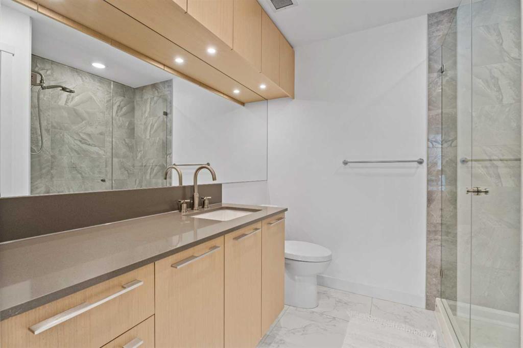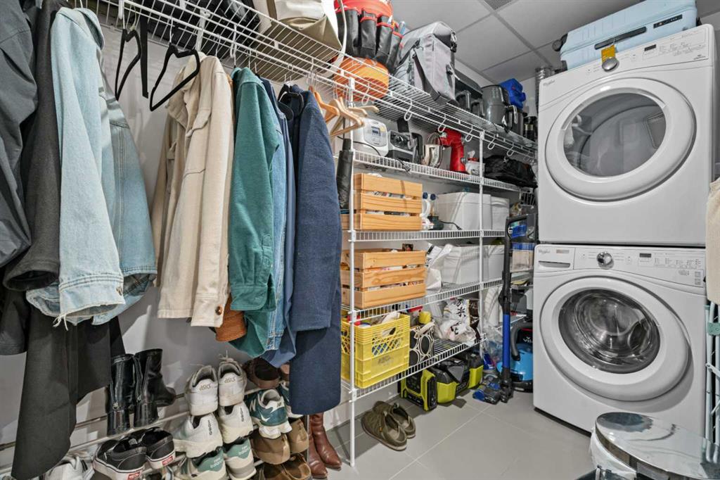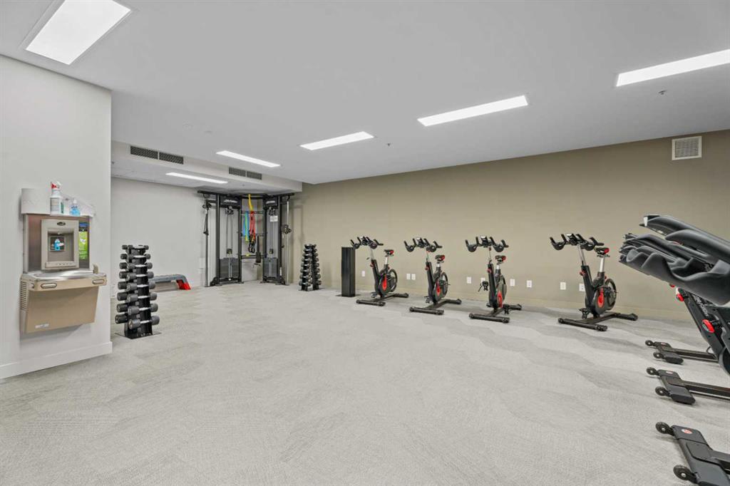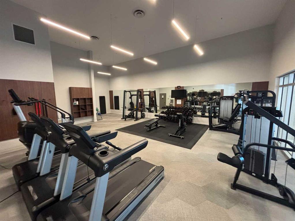OPEN HOUSE 3-5pm SUNDAY April 19 – Welcome to Radius, an amenity-rich building offering something for every lifestyle, located in the desirable neighbourhood of Bridgeland. This spacious and extensively upgraded 2-bedroom, 2-bathroom unit features modern finishes and a bright, inviting atmosphere with a soft contemporary design. The well-appointed kitchen includes a built-in oven, gas range, ample counter space, and quality appliances, flowing seamlessly into the open-concept dining and living area complete with beautiful custom built-ins for storage and media. The generously sized primary bedroom offers a walk-in closet with California Closets organizers and a stylish ensuite with automatic floor lighting, a large vanity, and a walk-in shower. The versatile second bedroom is equipped with built-in storage and a Murphy bed with integrated desk attachments, making it ideal for guests or a functional home office. Additional highlights include a rare oversized in-suite storage and laundry room, along with a well-appointed 4-piece main bathroom. Residents enjoy access to exceptional building amenities including concierge and the main gym (1st floor), delivery room (2nd floor), secondary gym (3rd floor), yoga/barre room (4th floor), spin room (5th floor), rooftop patio and gardens with stunning city views (7th floor), dog wash station and bike storage (P1). This unit also comes with titled underground parking, and a dedicated storage room, offering convenience and comfort in one of Calgary’s most vibrant communities.