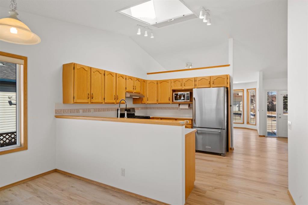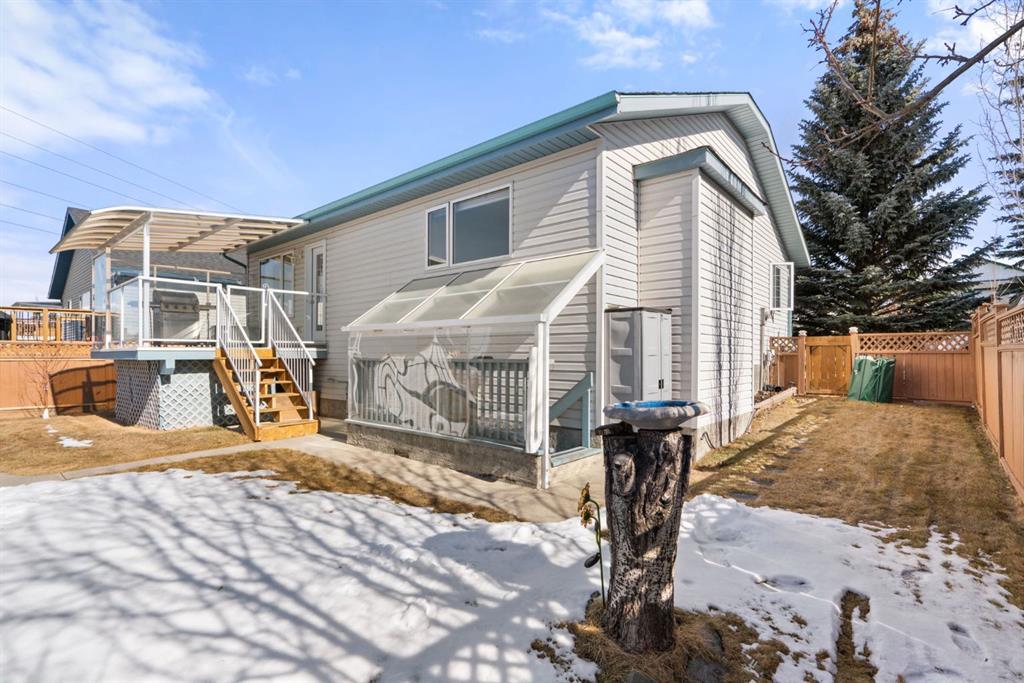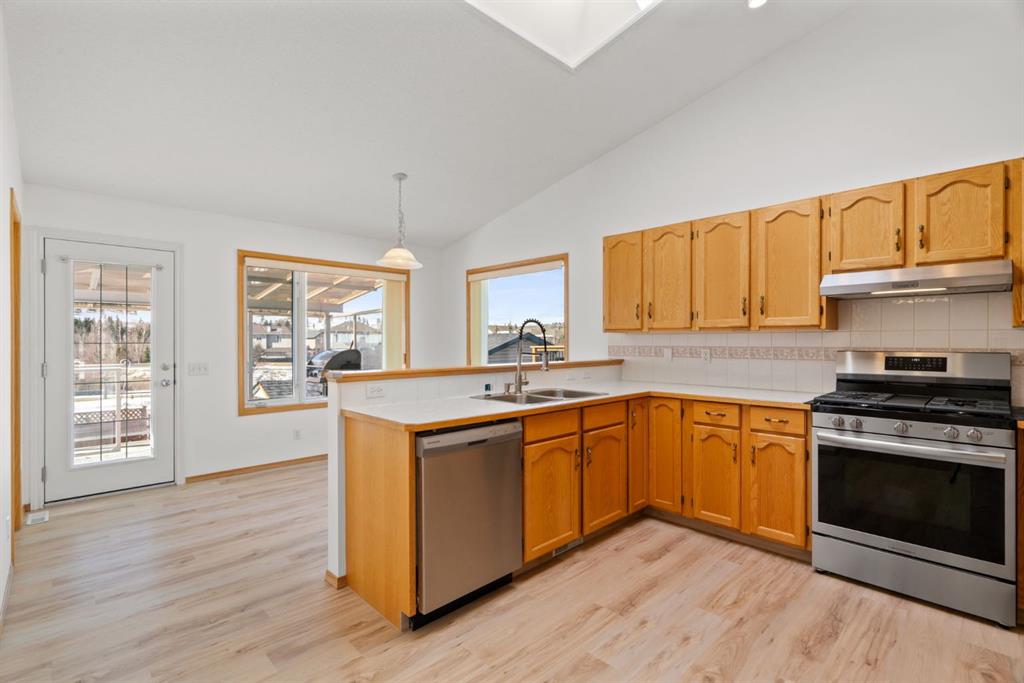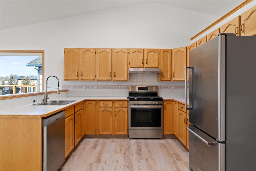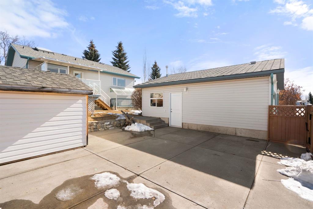 Beautifully maintained BUNGALOW in the desirable community of WEST TERRACE, just steps from Cochrane’s incredible pathway system & only a short WALK to the BOW River. This 3-bedroom, 3-bathroom home offers a functional layout with 2 bedrooms up OR enjoy your spacious primary retreat complete with PRIVATE 3 piece ensuite & use second bedroom as an OFFICE! 4 piece Bath PLUS convenience of MAIN FLOOR laundry on this level. Bright, inviting living area featuring cozy gas FIREPLACE, vaulted ceiling & a SUN FILLED kitchen enhanced by a skylight. SO much counter space. Walk in pantry! Recent updates include PAINT, vinyl plank flooring (2026), newer appliances – including gas stove (2025), dishwasher (2024), updated doors, furnace (2023), roof shingles (2021). Hidden screen doors for your comfort. All these updates will allow you to start enjoying this home right away – while providing peace of mind for years to come! The fully finished walk-up basement (Polycarbonate roof to protect stairs) offers additional living space, another bedroom (Window may not be egress to todays standards), 3 piece bth & flexibility for a variety of lifestyles. Multi generational living possible here! Potential for Suite in basement w/separate entrance (pending approval from Town of Cochrane). SOUTH outdoor living is a standout!!! GREAT curb appeal from the minute you pull up! Did I mention how much street parking you can enjoy?! Enjoy COVERED deck off kitchen overlooking McCaig’s Park – featuring Polycarbonate roof, dura-deck, new stairs (2025) & gas line for BBQ. The PRIVATE backyard (no neighbours behind you!) backs onto greenspace & includes large gated concrete pad. Trailer parking, addtl storage or perfect entertaining space. OVERSIZED DOUBLE GARAGE 23.3 x 23.3 is HEATED, wired with 220V & comes equipped w/air lines & compressor – ideal for hobbyists or anyone needing extra workspace! Back alley is bus route – ALWAYS plowed/graded. Addtl features include Vacu-Flo rough-in, underground water system front & back (professionally maintained) & prepaid lawn care services for the 2026 year! Nicely landscaped front/back with apple trees, cherry trees, and perennials. Rare opportunity to own well LOVED home – in PRIME location close to nature, pathways & all amenities. THREE schools in area. West Terrace has MANY playgrounds & is well connected by footpaths. Ride your bike, walk the dog or take the family for a walk along the path beside the Bow River & enjoy NATURE in your own neighbourhood! Easy access to everything downtown Cochrane offers. Close to Calgary. Be in mountains under 45 mins! 40 mins to Calgary Airport or Downtown. NO POLY B.