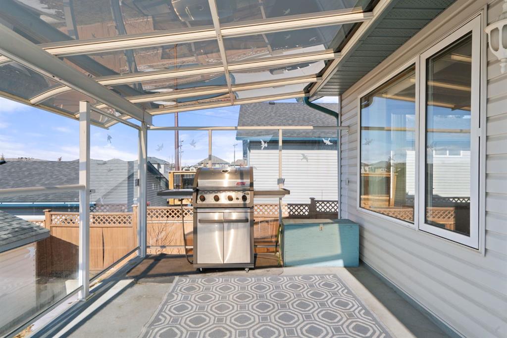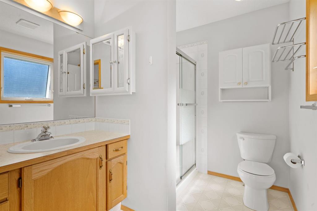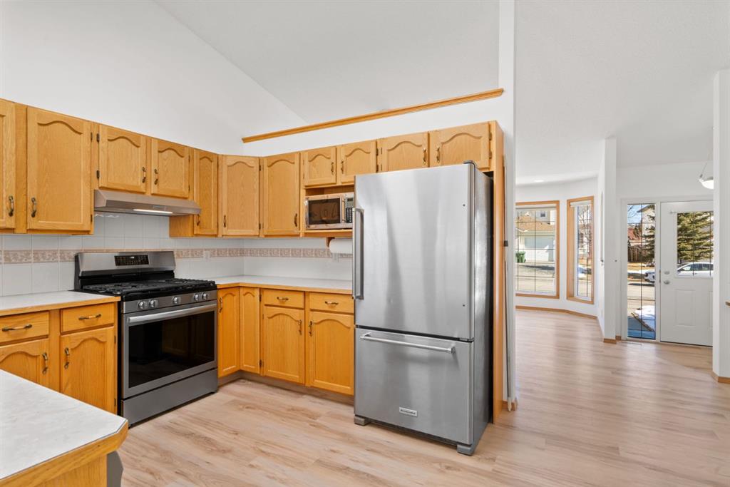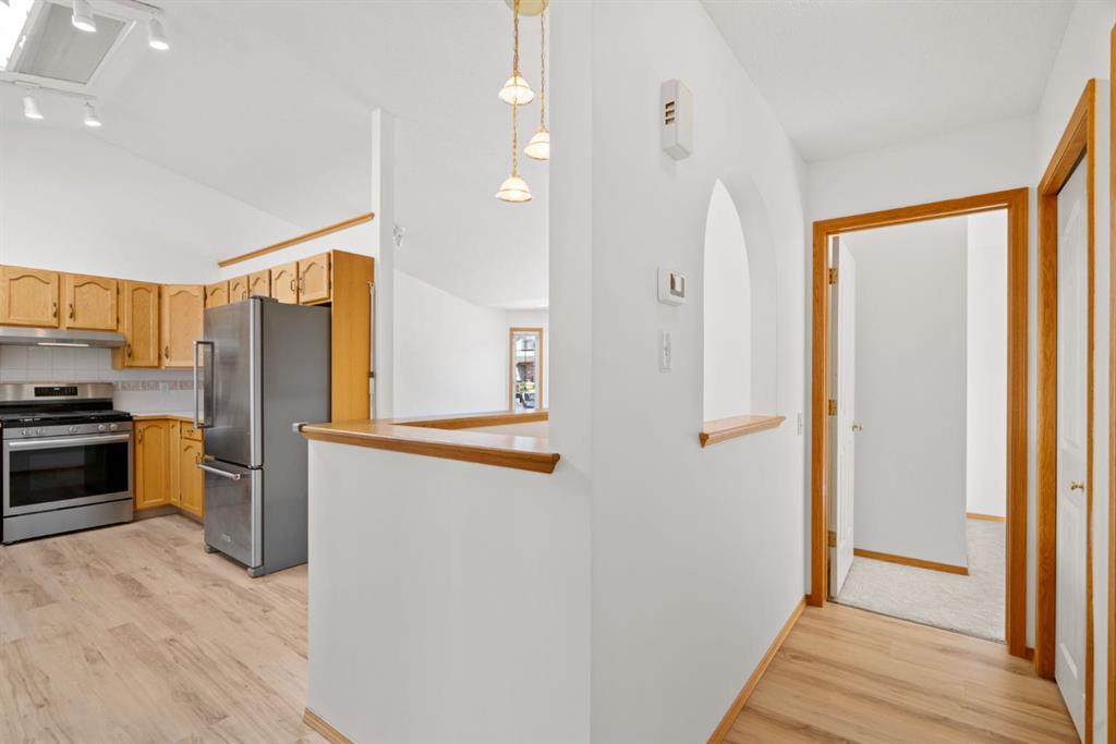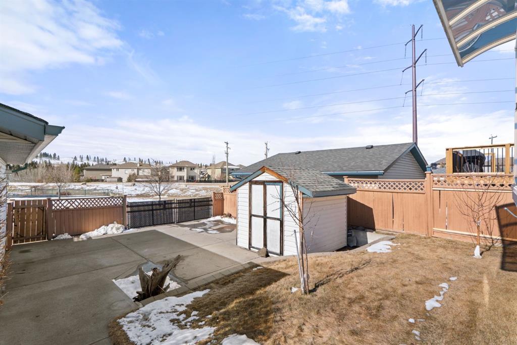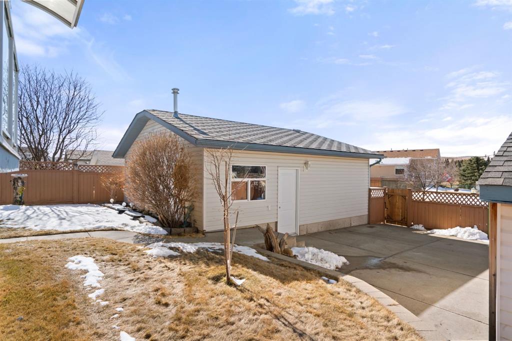 Beautifully maintained BUNGALOW in the desirable community of WEST TERRACE, just steps from Cochrane’s incredible pathway system & only a short WALK to the BOW River. This 3-bedroom, 3-bathroom home offers a functional layout with 2 bedrooms up OR enjoy your spacious primary retreat complete with PRIVATE 3 piece ensuite & use second bedroom as an OFFICE! 4 piece Bath PLUS convenience of MAIN FLOOR laundry on this level. Bright, inviting living area featuring cozy gas FIREPLACE, vaulted ceiling & a SUN FILLED kitchen enhanced by a skylight. SO much counter space. Walk in pantry! Recent updates include PAINT, vinyl plank flooring (2026), newer appliances – including gas stove (2025), dishwasher (2024), updated doors, furnace (2023), roof shingles (2021). Hidden screen doors for your comfort. All these updates will allow you to start enjoying this home right away – while providing peace of mind for years to come! The fully finished walk-up basement (Polycarbonate roof to protect stairs) offers additional living space, another bedroom (Window may not be egress to todays standards), 3 piece bth & flexibility for a variety of lifestyles. Multi generational living possible here! Potential for Suite in basement w/separate entrance (pending approval from Town of Cochrane). SOUTH outdoor living is a standout!!! GREAT curb appeal from the minute you pull up! Did I mention how much street parking you can enjoy?! Enjoy COVERED deck off kitchen overlooking McCaig’s Park – featuring Polycarbonate roof, dura-deck, new stairs (2025) & gas line for BBQ. The PRIVATE backyard (no neighbours behind you!) backs onto greenspace & includes large gated concrete pad. Trailer parking, addtl storage or perfect entertaining space. OVERSIZED DOUBLE GARAGE 23.3 x 23.3 is HEATED, wired with 220V & comes equipped w/air lines & compressor – ideal for hobbyists or anyone needing extra workspace! Back alley is bus route – ALWAYS plowed/graded. Addtl features include Vacu-Flo rough-in, underground water system front & back (professionally maintained) & prepaid lawn care services for the 2026 year! Nicely landscaped front/back with apple trees, cherry trees, and perennials. Rare opportunity to own well LOVED home – in PRIME location close to nature, pathways & all amenities. THREE schools in area. West Terrace has MANY playgrounds & is well connected by footpaths. Ride your bike, walk the dog or take the family for a walk along the path beside the Bow River & enjoy NATURE in your own neighbourhood! Easy access to everything downtown Cochrane offers. Close to Calgary. Be in mountains under 45 mins! 40 mins to Calgary Airport or Downtown. NO POLY B.