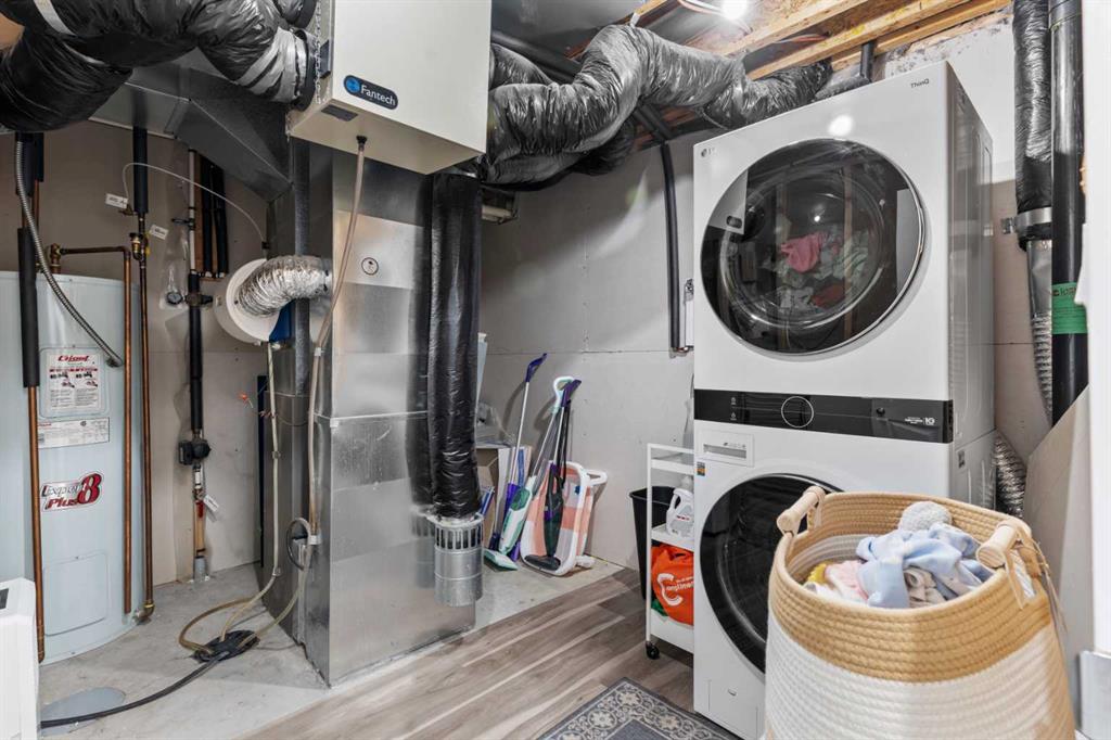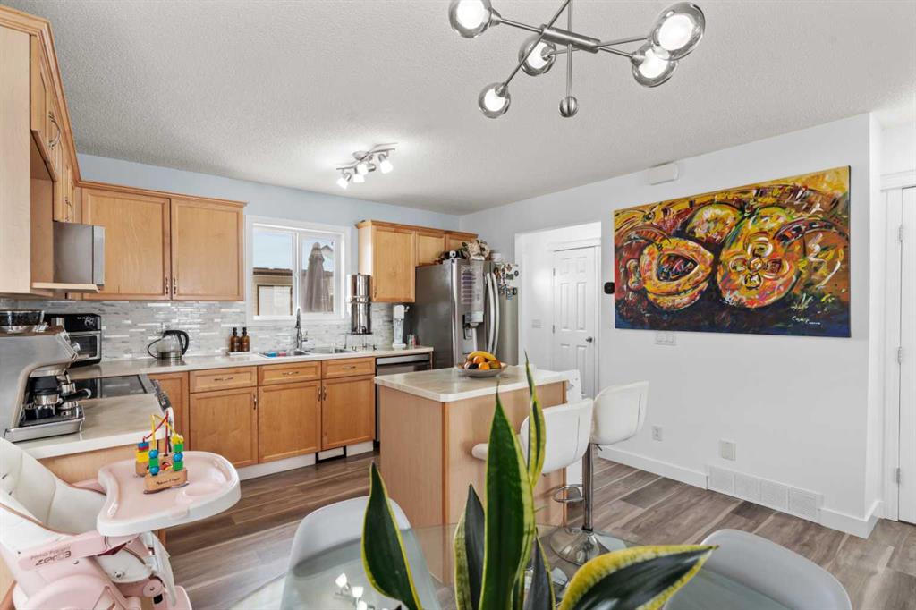 This home also features a double detached garage with back lane access, providing convenient parking and storage. Appliances included are refrigerator, electric stove, dishwasher, microwave hood fan, washer, dryer, and window coverings.