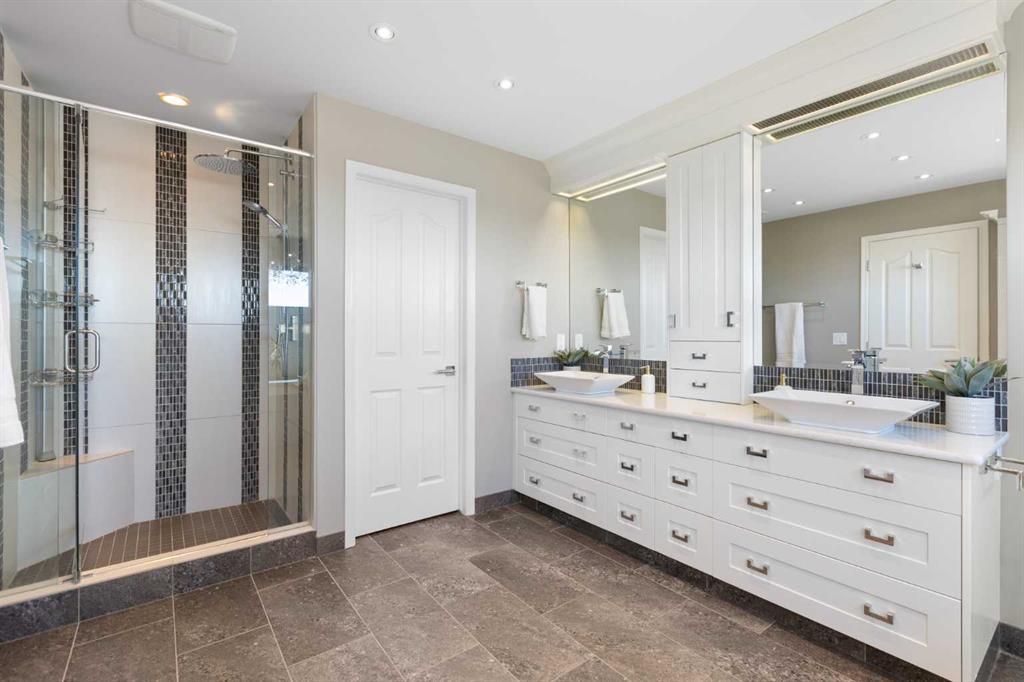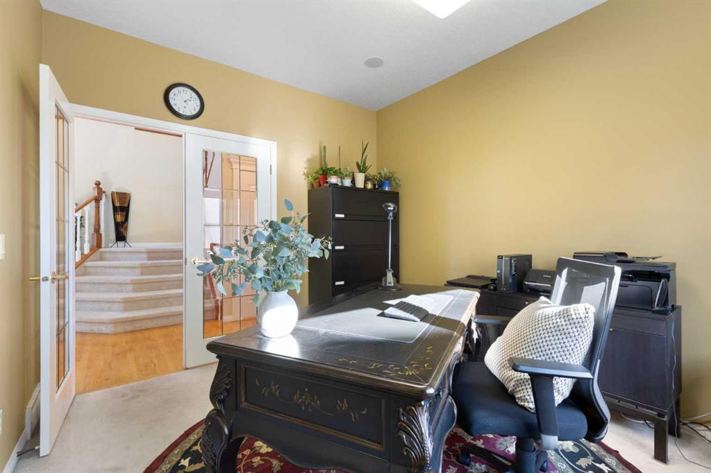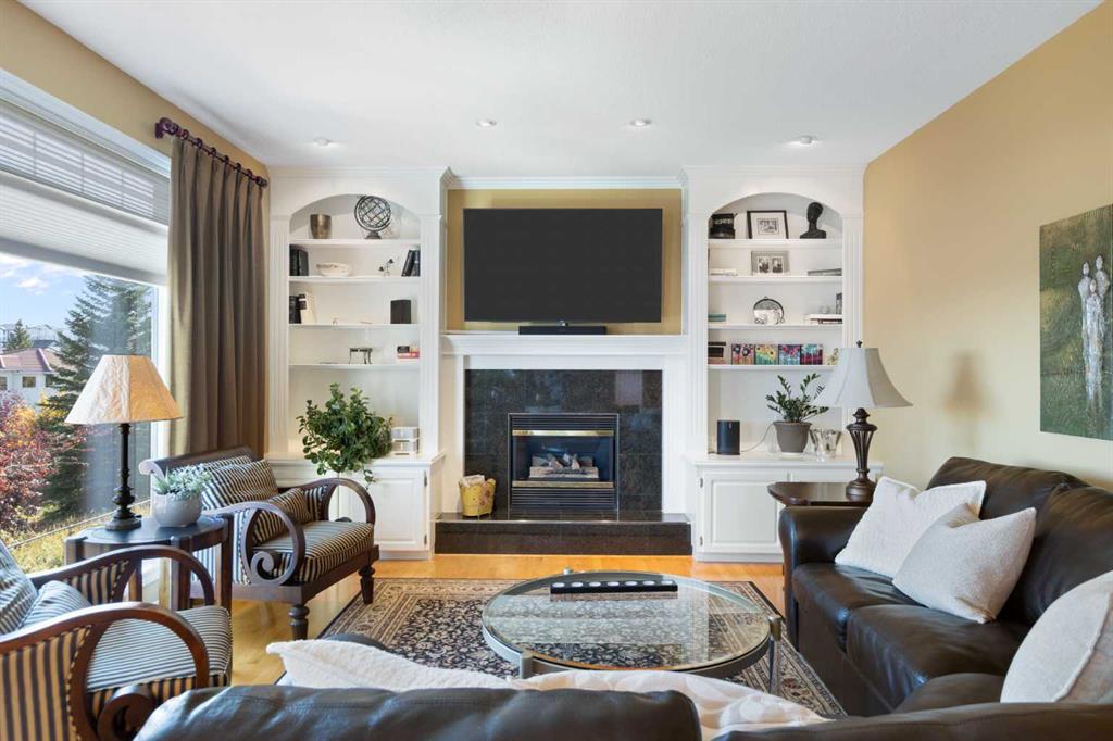 Backing onto the 16th hole of The Hamptons Golf Course, this meticulously maintained, single-owner walkout home offers nearly 4,000 sq. ft. of developed living space. Enjoy unobstructed east-facing sunrise views over the fairway, pond, and city, plus night-time city lights. The main floor features an open-concept kitchen, dining, and family area with gas-burning fireplace, main floor den with built-in cabinetry, and an upper deck with frameless glass railing and two gas connections for flexible outdoor living. The kitchen includes Sub-Zero 36” built-in fridge/freezer, Wolf 30” dual-fuel range, Panasonic microwave, Miele dishwasher, and hood fan, while Hunter Douglas window coverings enhance the main spaces. Upstairs, the home offers four spacious bedrooms, including a primary suite with custom ensuite (2015) featuring a standalone soaking tub, in-floor heating, glass-enclosed shower with rain head, custom cabinetry, and Kohler designer fixtures. TV mounts are in the living room and master bedroom. The walkout basement extends living space with a large office wired for internet and dual phone lines, custom maple cabinetry with media centre and bookcase, second gas-burning fireplace, and additional flex room ideal as a bedroom, gym, or hobby space. Direct access to a large interlocking patio provides private golf course views. An oak standalone bookcase at the bottom of the stairs is included. Other features include LG washer & dryer, two Amana high-efficiency furnaces, central A/C, two water heaters (2025), Kinetico water system, Vacu-Flo system with attachments, updated vinyl-clad windows (2015–2021), oversized two-and-a-half-car garage with large driveway, and a programmable in-ground irrigation system. Located on a quiet street and maintained as a no-pet home, this property combines exceptional design, premium finishes, and a premier golf course setting in The Hamptons, close to parks, schools, walking paths, and convenient access to Stoney Trail, Country Hills Boulevard, and Shaganappi Trail.