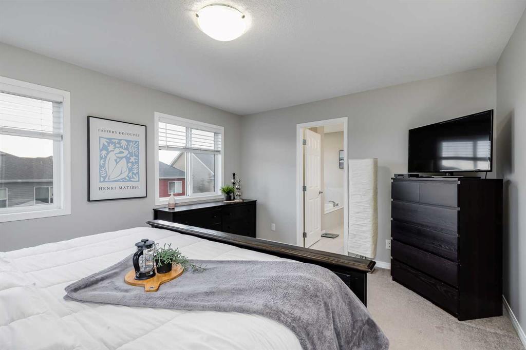 Welcome to this beautifully finished two-story home in the highly sought-after community of South Windsong in Airdrie! Offering a perfect blend of style, comfort, and function, this property is move-in ready and designed to impress from the moment you arrive. The home’s charming curb appeal provides a warm welcome before stepping inside to discover over 1,839 sq ft above grade modern living space. The open-concept main floor features 9-ft ceilings and stunning vinyl plank flooring throughout, creating a bright and airy feel. A cozy gas fireplace anchors the spacious living room, perfect for family nights or entertaining guests. The kitchen is sure to impress, boasting sleek quartz countertops, stainless steel appliances, and a gas stove, with plenty of counter and island space for cooking and casual dining. The adjoining dining area offers seamless access to the outdoor living space, making it easy to enjoy meals and gatherings inside or out. Upstairs, you’ll find three generously sized bedrooms, including a relaxing primary suite with a private ensuite bathroom with double vanities. The upper floor also includes a convenient laundry space and a bonus room that opens to a west-facing balcony, ideal for enjoying your morning coffee or watching beautiful evening sunsets. This bonus space can easily serve as a family lounge, home office, or playroom—flexibility to fit your lifestyle. The fully finished basement adds even more valuable living space with modern LVP flooring, an additional bedroom, a full bathroom, and a spacious recreation room—perfect for guests, teens, or a cozy movie night. The thoughtful layout provides plenty of space for relaxation and creativity while maintaining excellent flow throughout. Step outside to your private backyard retreat featuring a double-tiered deck—perfect for BBQs, entertaining, or quiet evenings soaking in the hot tub. There’s ample room for kids or pets to play, and the low-maintenance design allows you to enjoy your leisure time instead of yard work. Located in one of Airdrie’s most desirable areas, South Windsong offers a great lifestyle surrounded by amenities. You’ll find schools, parks, and green spaces within walking distance and shopping, restaurants, and coffee shops just minutes away. Commuting is a breeze with quick access in and out of Airdrie, while the community’s family-friendly atmosphere and scenic pathways make it a wonderful place to live and grow. This exceptional home has it all—modern finishes, open-concept design, 4 total bedrooms, 3.5 bathrooms, a finished basement, and outdoor living with a hot tub—all in a fantastic location close to everything you need. Whether you’re a growing family, a couple seeking more space, or someone looking to enjoy the perfect mix of comfort and convenience, this gem checks every box. Don’t miss your chance to make this beautiful property your new home—schedule your showing today with your favorite realtor!