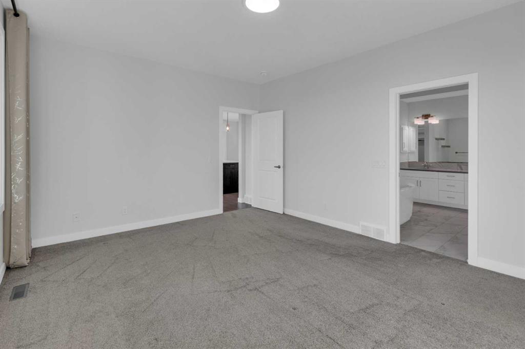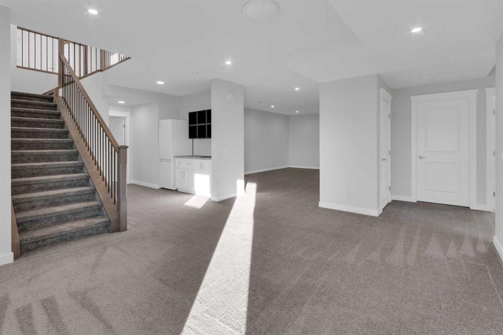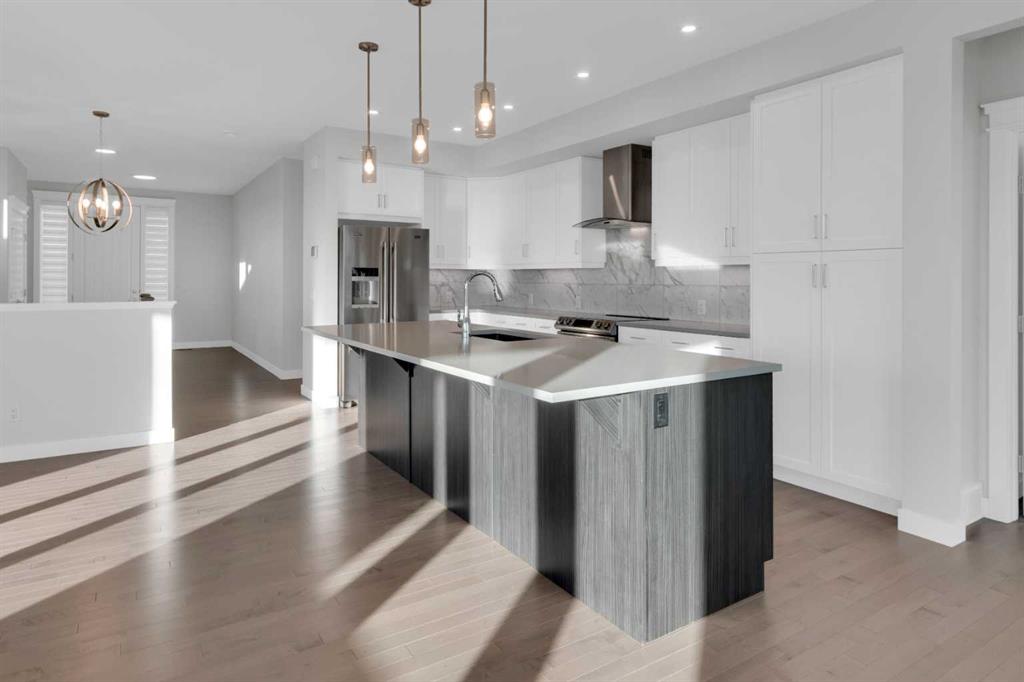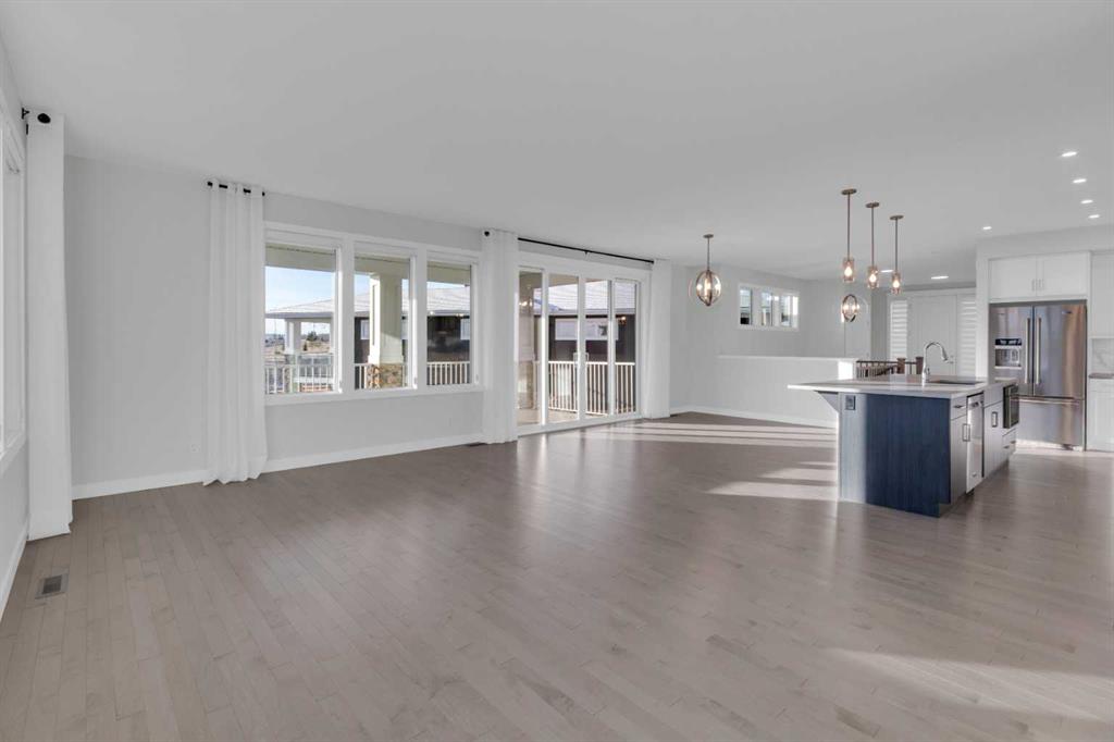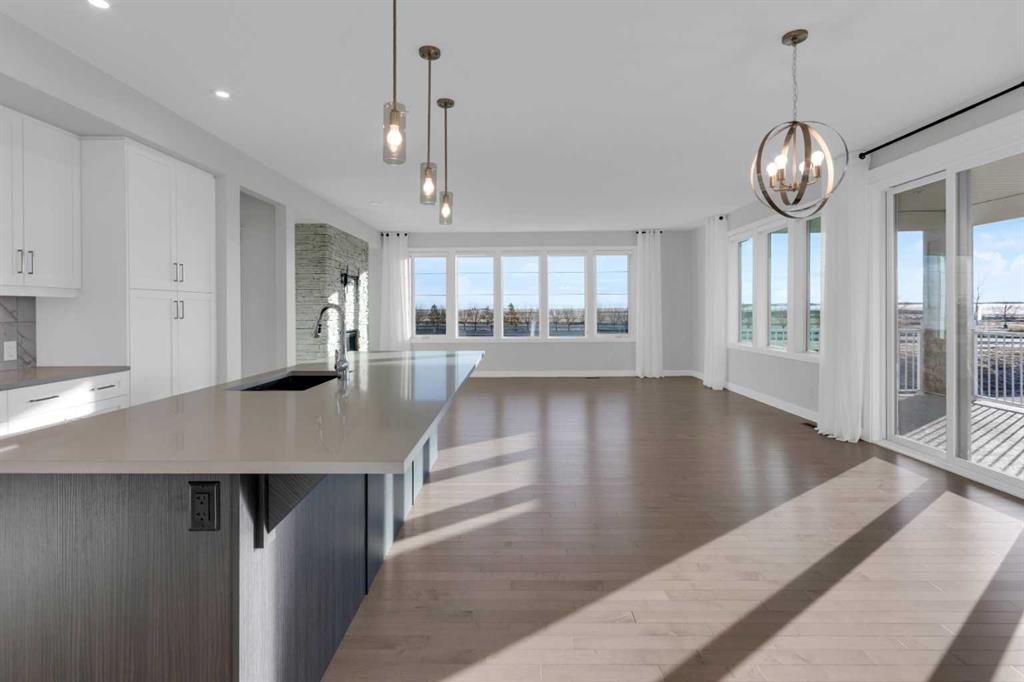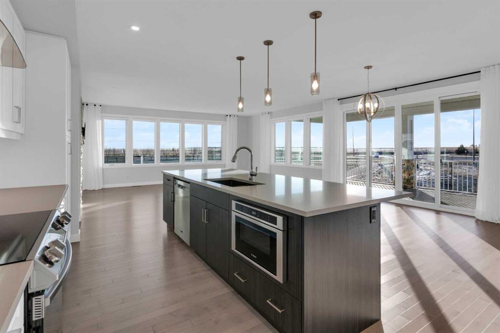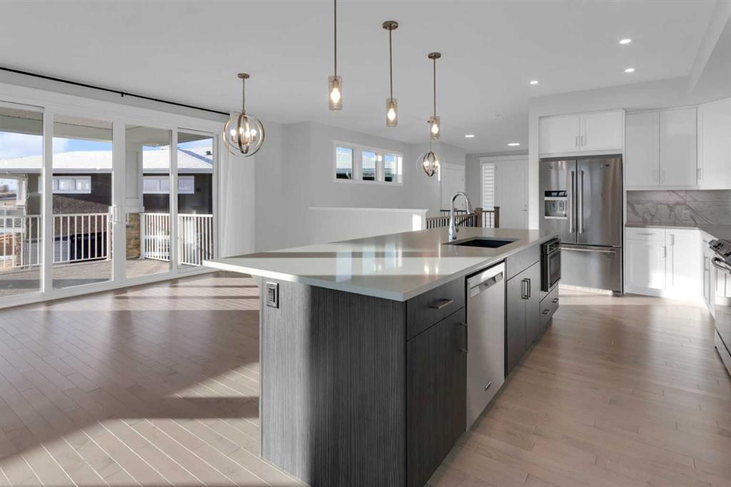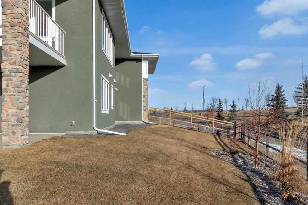 Welcome to this stunning, fully developed bungalow villa in the award-winning community of Harmony. Offering a true lock-and-leave lifestyle with no condo fees, This turn-key residence is beautifully designed with nothing to do but move in and enjoy the exceptional lifestyle Harmony has to offer. The main level features an inviting open-concept floor plan highlighted by 9’ ceilings, rich hardwood and ceramic tile flooring, and an impressive gourmet kitchen. The kitchen is a true culinary masterpiece with sleek white custom cabinetry, pristine quartz countertops, an extra-long island, high-end stainless-steel appliances including an induction cooktop and built-in oven, and a cabinet-style pantry, perfect for both everyday living and entertaining. Expansive windows and double sliding patio doors on the south side flood the home with natural light and lead to a covered deck, creating an exceptional outdoor living space. The primary retreat offers a large walk-in closet and a luxurious spa-inspired ensuite complete with a standalone soaker tub, oversized shower, and double vanity. The fully finished basement is equally impressive with 9’ ceilings, two generous bedrooms (both with walk-in closets), a full bathroom, spacious recreation room, a wet bar, and a large media room. A garden door opens to a covered aggregate patio, complemented by a circular stone seating area, ideal for relaxing or entertaining. Additional highlights include motorized, zebra blinds, an oversized garage, professionally landscaped yard with underground irrigation, and a prime location backing onto a walking path. As a resident of Harmony, enjoy unparalleled community amenities including a pristine lake with swimming, fishing, and paddle-boarding, extensive walking and biking paths, parks, playgrounds, dog park, and year-round community events. Golf enthusiasts will love proximity to the world-class Mickelson National Golf Club and LaunchPad. All of this, just minutes from Calgary, perfectly balancing mountain serenity with urban convenience. This exceptional home blends meticulous design, luxurious finishes, and an unbeatable location—offering a truly harmonious living experience.