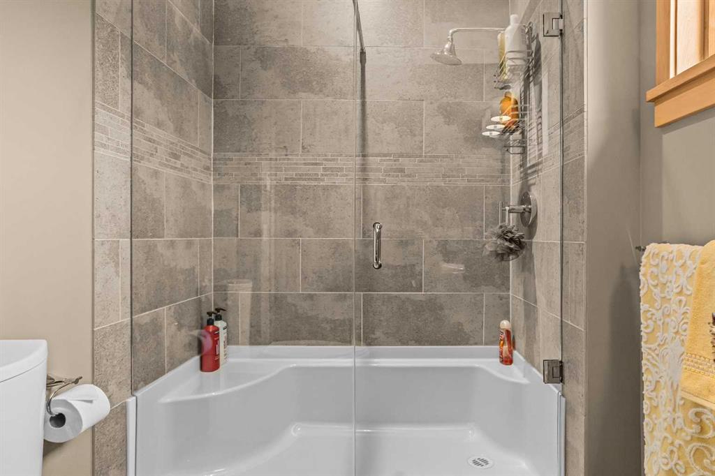 Set directly along the banks of Policeman’s Creek, this 4-bedroom, 3.5-bathroom, over 2,000sqft villa offers a rare opportunity in Spring Creek Mountain Village, all just steps from downtown Canmore. The entry level features a heated single-car garage, two bedrooms, a full bathroom, and a dedicated laundry area, ideal for guests, family, or a flexible workspace. The main living level is open and inviting, anchored by warm hardwood flooring and expansive windows that frame the creek and surrounding trees. The kitchen is well-appointed with quartz countertops, stainless steel appliances, generous cabinetry, and a large island suited for gatherings. The dining area opens to a secondary deck, while the living room is centered around a striking Rundle stone fireplace and provides direct access to the primary deck, with stairs leading down to the creekside patio.