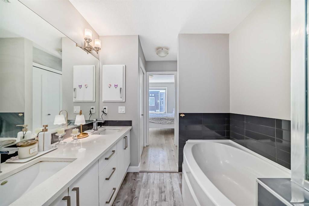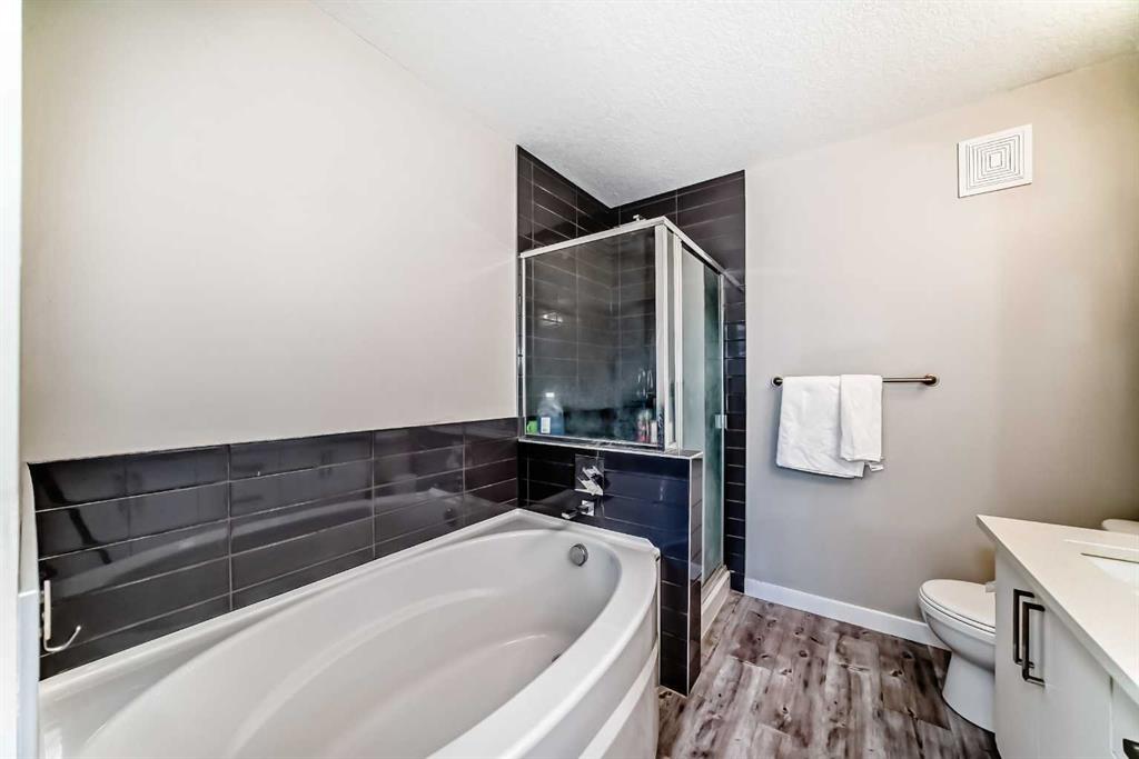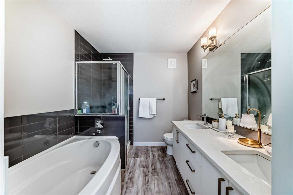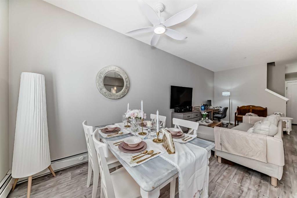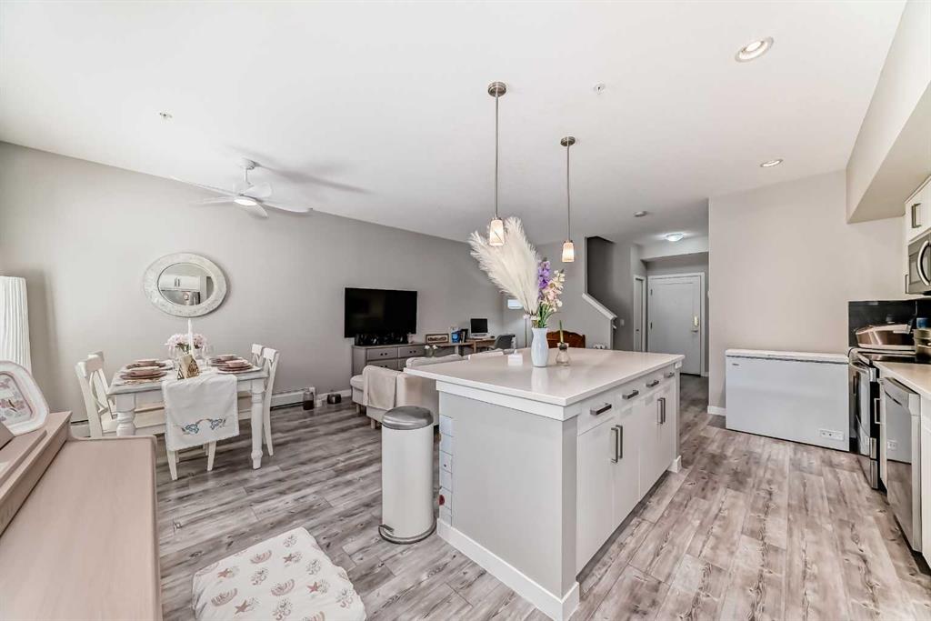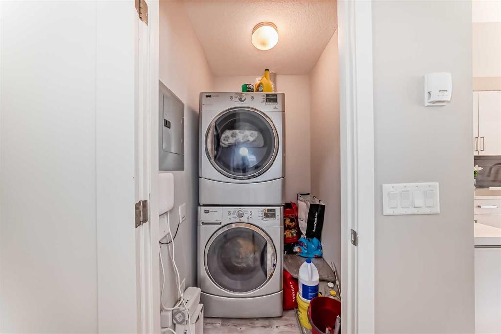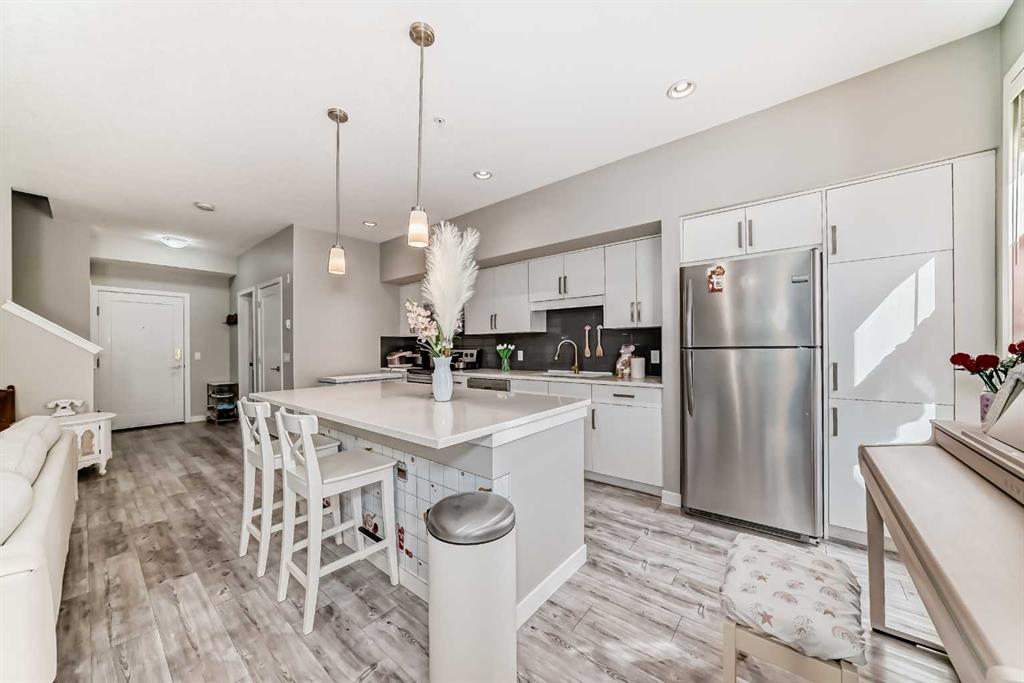 Welcome to this well-maintained 2-bedroom, 2.5-bathroom two-storey unit offers the spacious feel of a townhouse with the convenience of condo living. Condo fees include heat and water, adding excellent value. Step inside to a welcoming foyer that opens into a bright, open-concept living and dining space featuring 9’ ceilings and luxury vinyl plank flooring throughout. The modern kitchen update with newer cabinets, white quartz countertops, stainless steel appliances, an oversized island, and ample cabinet space. The main floor also includes a good-sized balcony, a convenient 2-pcc bathroom, and a laundry room with stackable washer/dryer and extra storage. Upstairs, NEW luxury vinyl plank flooring (2024) continues throughout. The spacious primary bedroom features a walk-through closet and an upgraded 5-pc ensuite with double vanity and soaker tub. A generous second bedroom, a full 4-pc bathroom, and a versatile den with a new light fixture complete the upper level. Enjoy the convenience of shopping nearby, with easy access to grocery stores, restaurants, coffee shops, and fitness centers just steps away. The home is also within walking distance to transit and top ranking schools nearby, making it ideal for families.