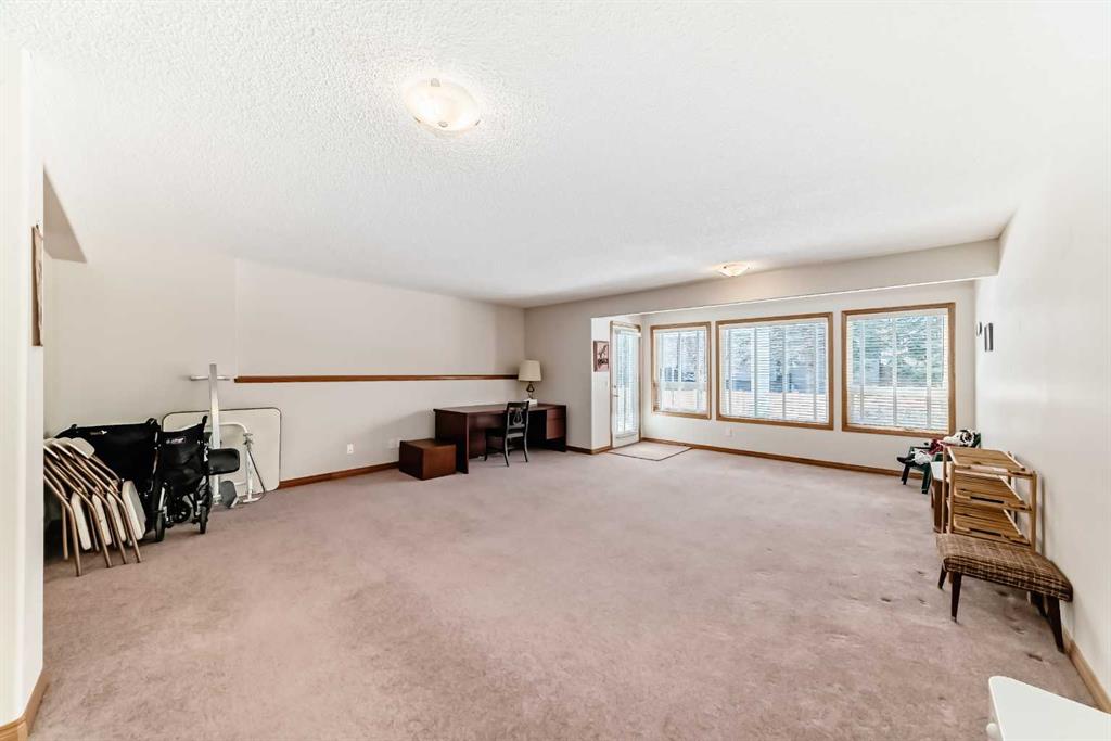 The primary bedroom is generously sized and features a walk-in closet with built-ins, along with a spacious 5-piece ensuite. A versatile den with French doors sits just off the main living area—perfect for a home office or reading room—and is conveniently located near the 4-piece main bath.