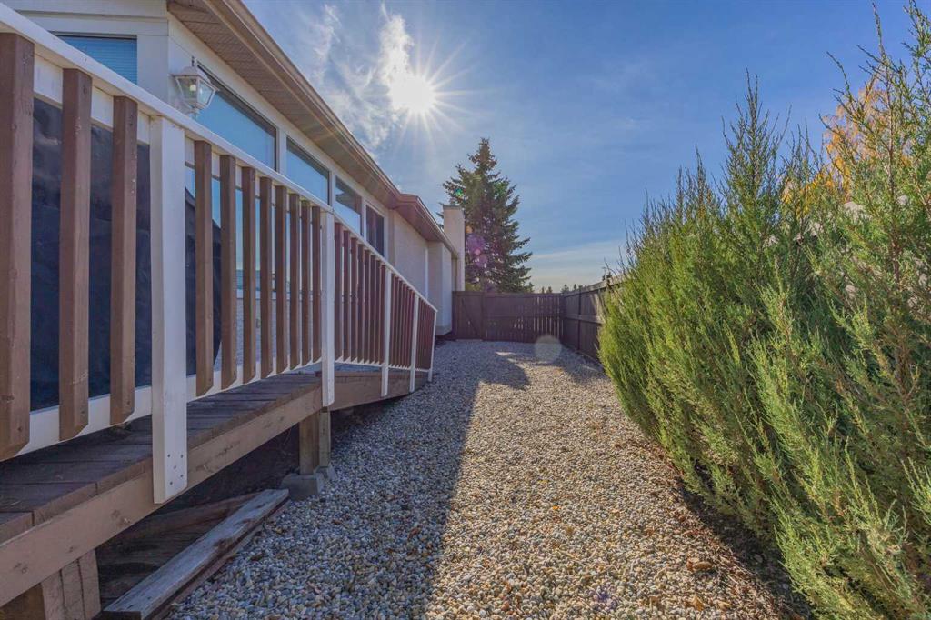 Bungalow living in one of Okotoks best neighbourhoods! Located in the Suntree community on the north side of town – easy for commuting, close to shopping, schools, parks, pathways and amenities. This charming home has been well taken care of by the same owner for the last 20 years, new windows (5yrs), new HWT (5yrs), Stucco siding (5yrs), Shingles (6yrs). This fully finished bungalow offers over 1500 SQFT above grade, main floor laundry, a spacious primary featuring a 4 pc ensuite bathroom, 2 additional bedrooms and a second 4 pc bathroom. The L shaped kitchen has white cabinetry, ample counter space, pantry and a window looking into the sun room that has infloor heating, vaulted ceiling and a gas fireplace. The living room has a large bay window that floods the space with natural light, a gas fireplace and flows into the dining room. The fully finished basement has a massive family/ rec space, 3rd full bathroom with soaker tub, office/den/craft room and a large storage room. Enjoy the home as-is or invest with confidence and make it your own in a value-supported neighbourhood. Located on a corner lot, giving you extra space – the low maintenance landscape will leave you with extra time to enjoy sitting on the large deck & patio spending time with family.