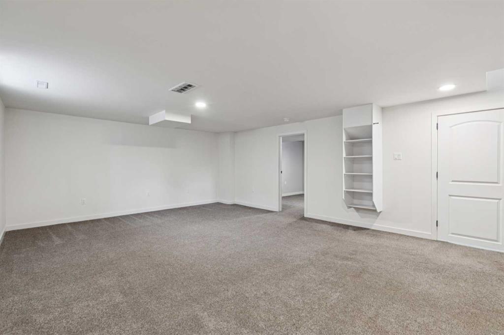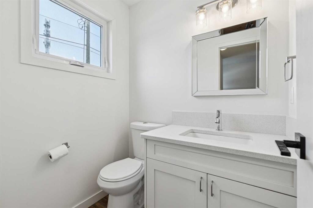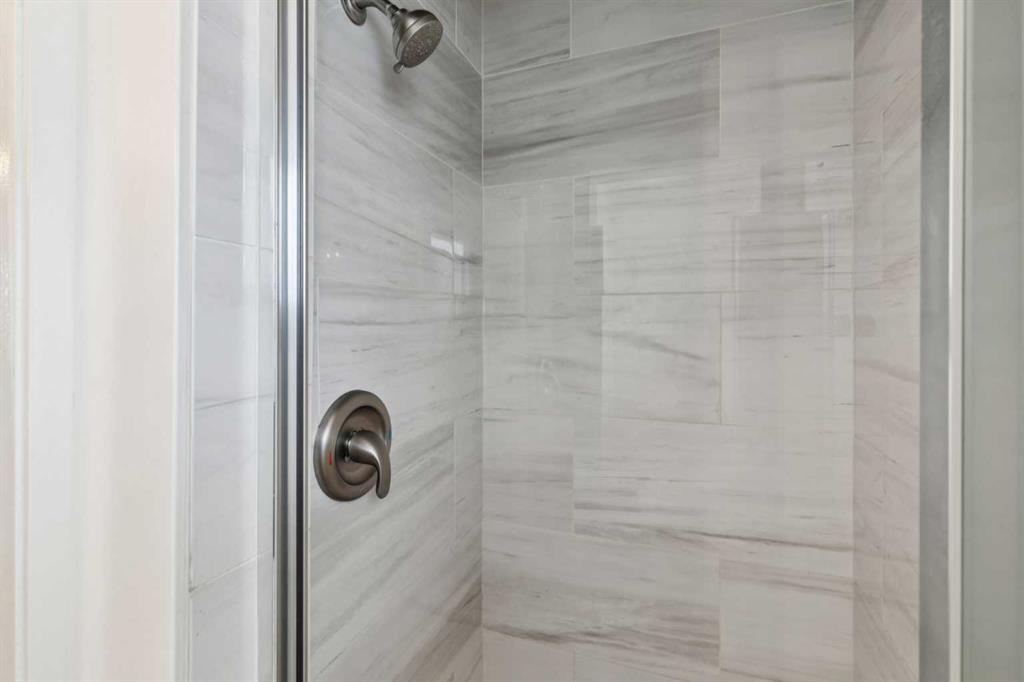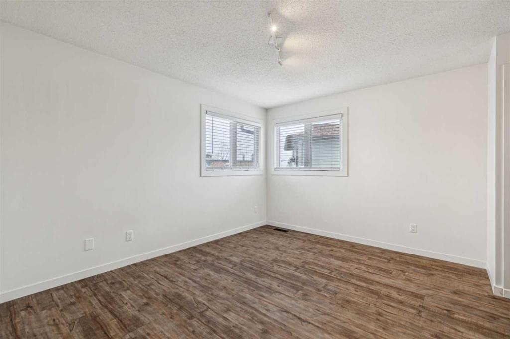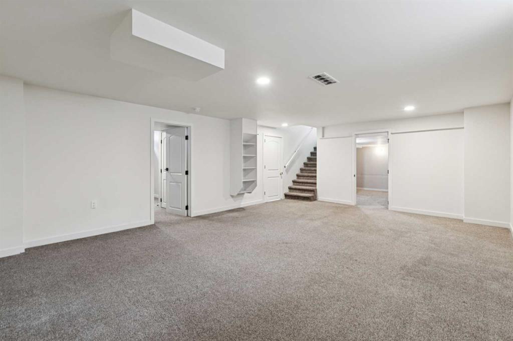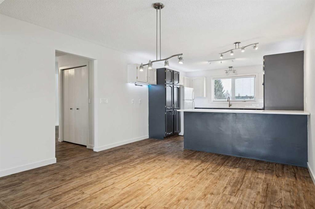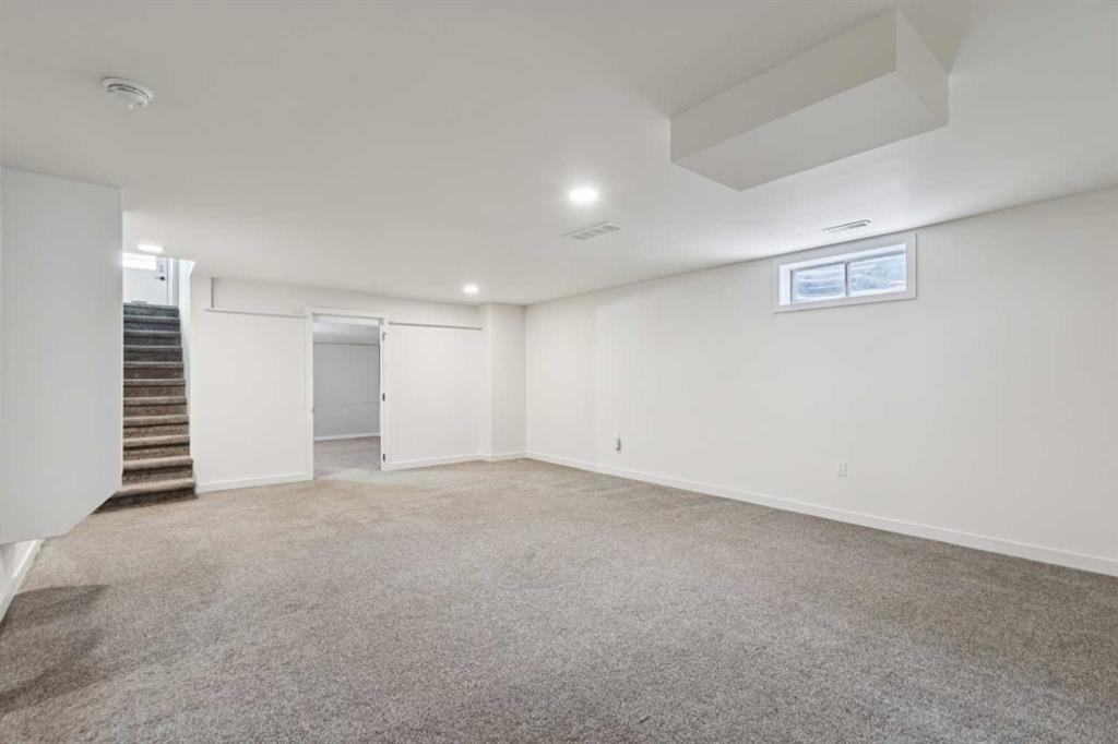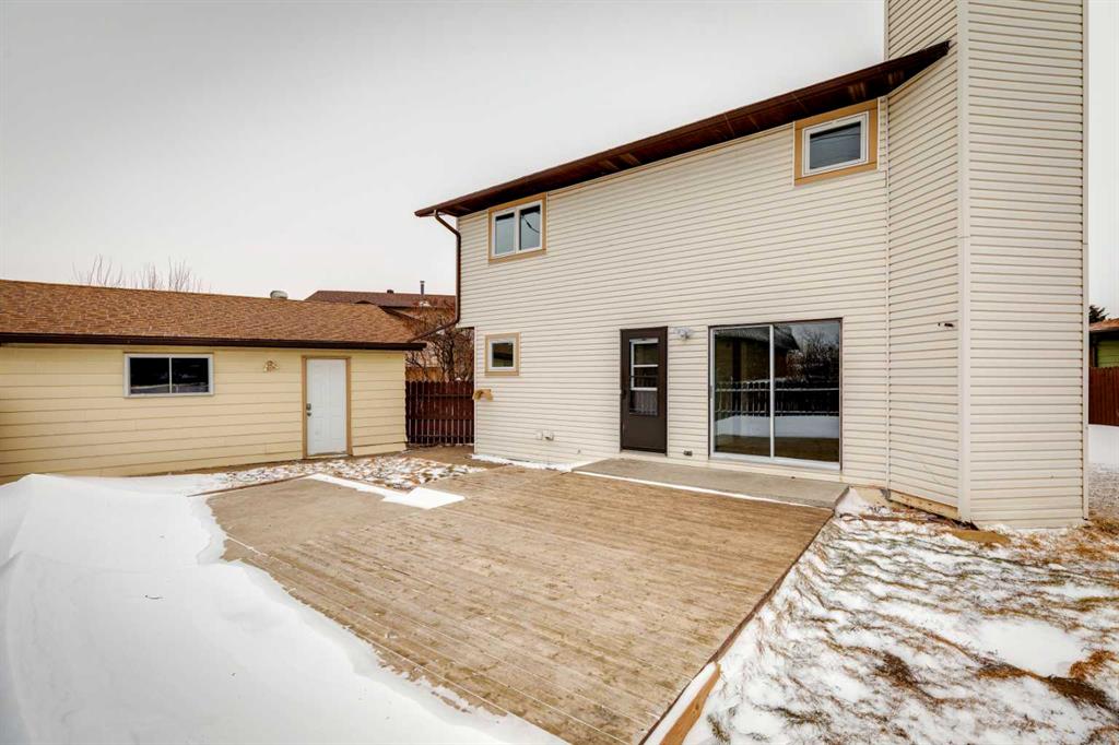 As you step into the home, you are greeted by a functional front entryway featuring a convenient closet for easy jacket and shoe storage. The foyer opens immediately into an expansive living room, where a large bay window floods the space with an abundance of natural light. The main floor transitions seamlessly into the open-concept dining area and kitchen, tied together by durable, vinyl-plank flooring. The modernized kitchen is a chef’s delight, showcasing a stylish two-toned cabinet design—crisp white uppers paired with deep blue lowers. This space is fully equipped with an electric cooktop, built-in double oven, and a sleek white refrigerator, all framed by elegant white quartz countertops and a subway tile backsplash. A unique multi-level design leads down to an additional living space, anchored by a classic brick-surround fireplace and sliding glass doors that provide direct access to the rear deck. Moving to the upper level, a classic white spindle staircase leads to the private bedrooms. The primary suite is notably spacious, easily accommodating a king-sized bed and complimented by a 3 pc ensuite, while the additional bedrooms feature large windows and updated closet doors, making them perfect for children’s rooms or a home office. These rooms share a clean, modern 4-piece bathroom with updated fixtures. The lower level offers even more versatility with a finished basement featuring plush carpeting, perfect for a media room or home gym. You’ll also find a secondary room offering great flexibility for a home office or guest space. Outside, the property features a fully fenced backyard with a spacious deck, ideal for summer gatherings, leading to the detached garage for secure parking and extra storage. Benefits continue with a back gated fence perfect for RV storage! Located in the heart of the established community of Temple, this home is just minutes away from everything a family needs. You are within walking distance to multiple schools, including Annie Foote and Father Scollen, as well as local parks and the Temple Community Association. With quick access to Stoney Trail and McKnight Blvd, plus the nearby Village Square Leisure Centre and Sunridge Mall, this location perfectly balances quiet residential living with city convenience.