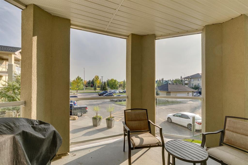 This serene 2-bedroom, 2-bathroom condo backs onto Fish Creek Park, offering direct access to stunning views and scenic hiking and biking trails. The spacious open-concept living area includes a dining space, a well-equipped kitchen, and a living room with a corner gas fireplace. A glass door leads out to a large balcony, perfect for BBQs and outdoor entertaining.