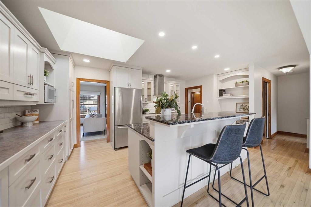 *OPEN HOUSE SATURDAY 2-5 PM Mar 21* Welcome to this thoughtfully upgraded home, ideally located on a quiet street in the sought-after community of KILLARNEY. This gorgeous 1950s home, situated on a 50’ x 120’ FOOT LOT (R-CG), offers outstanding curb appeal with its timeless wood exterior and classic brick accents. Upon entering, you’ll immediately feel a warm and welcoming presence. The 1394 SF traditional bungalow floor plan offers a total of 5 bedrooms and 2 bathrooms and around 2500 SF of total developed space. Character abounds in this meticulously maintained home including ORIGINAL HARDWOOD – refinished to a modern pale oak. The main floor showcases a light and bright living space including a dedicated dining area and a living room. Throughout the home you’ll find unique character touches including 3 fireplaces, original baseboards and trim, wood windows – this home is full of charm that you can’t find in a new build. There are three bedrooms on the main floor with one currently used as a work-from-home space with a built-in desk. The living area is inviting and bright and includes a cozy gas fireplace. Also on the main floor, you’ll find a RENOVATED BATHROOM (2023), and a spacious RENOVATED KITCHEN (2016) overlooking the dining area and private backyard. A major 1997 REAR EXTENSION expanded both the main floor and basement, creating a layout that offers more space than you’d expect, including a larger dining area, an additional main-floor bedroom, and extra lower-level living space. Downstairs, the fully developed basement adds great versatility with a spacious family room, two additional bedrooms and bath, a walk-in closet, plus a great storage and laundry space – perfect for guests, teens, or multi-purpose living. Notable improvements include a NEWER FURNACE (2020) and a RUBBER ROOF WITH A KITCHEN SKYLIGHT (2016). The many outdoor upgrades include: an oversized detached garage (2005), refreshed landscaping front and back, irrigation system, plus a screened patio with a gas heater, making it easy to enjoy the backyard well beyond summer. Perfectly positioned within walking distance to Killarney Aquatic and Rec Centre, Schools, Shopping, Grocery Stores, Westbrook LRT Station, with an easy 12 min drive to downtown Calgary. A well-cared-for Killarney home with meaningful updates and a location that continues to be one of SW Calgary’s best.
