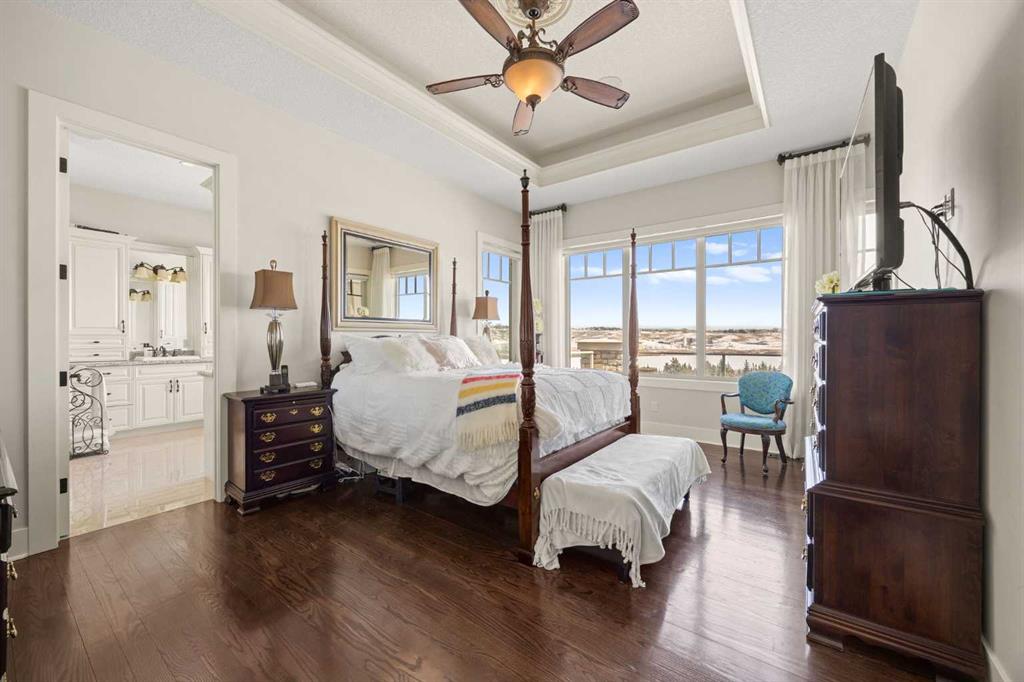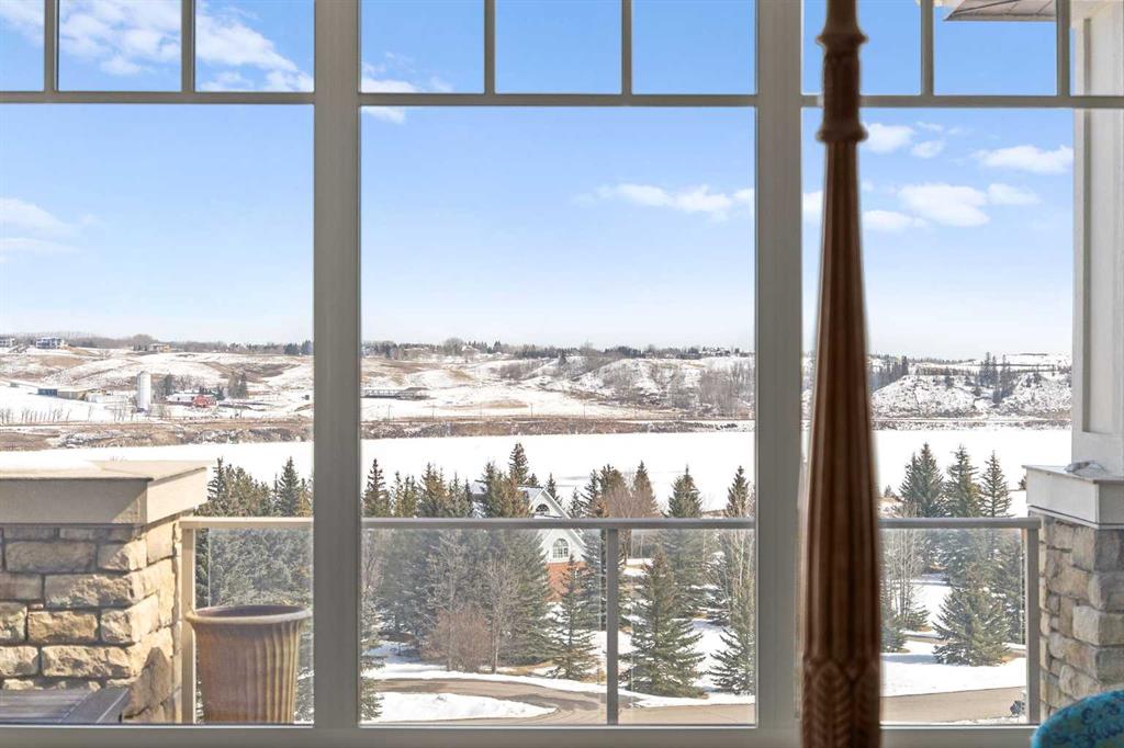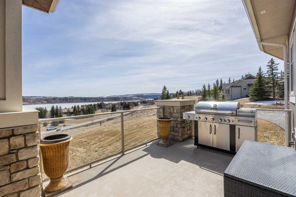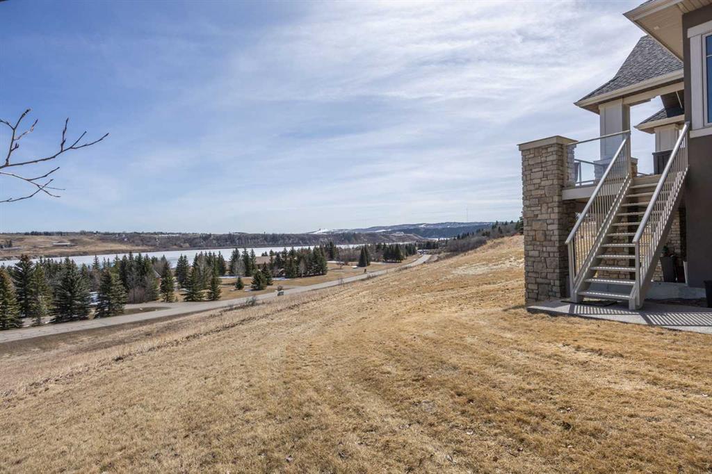 Perfectly positioned along the ridge in Emerald Bay, this custom-built walkout bungalow captures sweeping, unobstructed views of the Bow River and Rocky Mountains. Set on a quiet cul-de-sac, the home offers a rare combination of privacy, elevation, and a constantly changing natural backdrop.