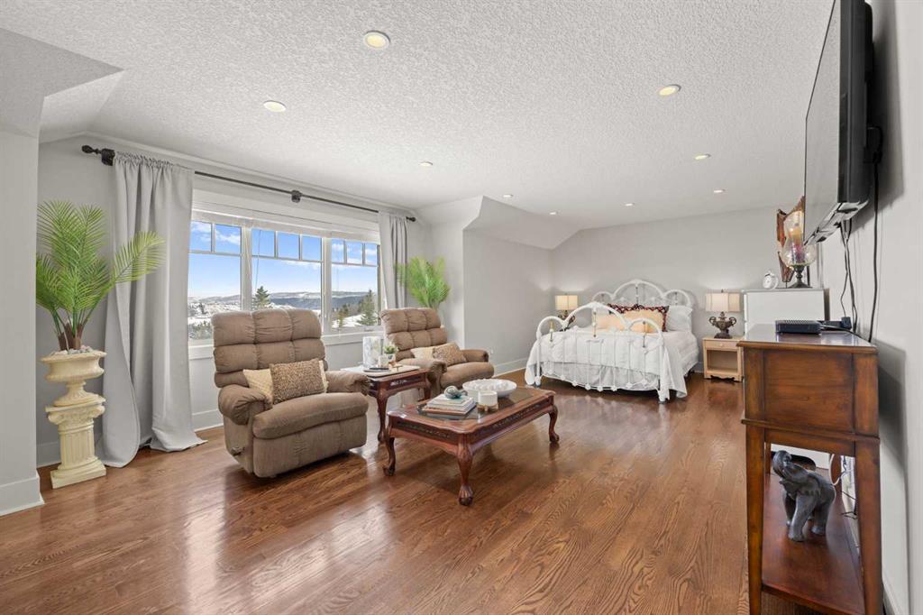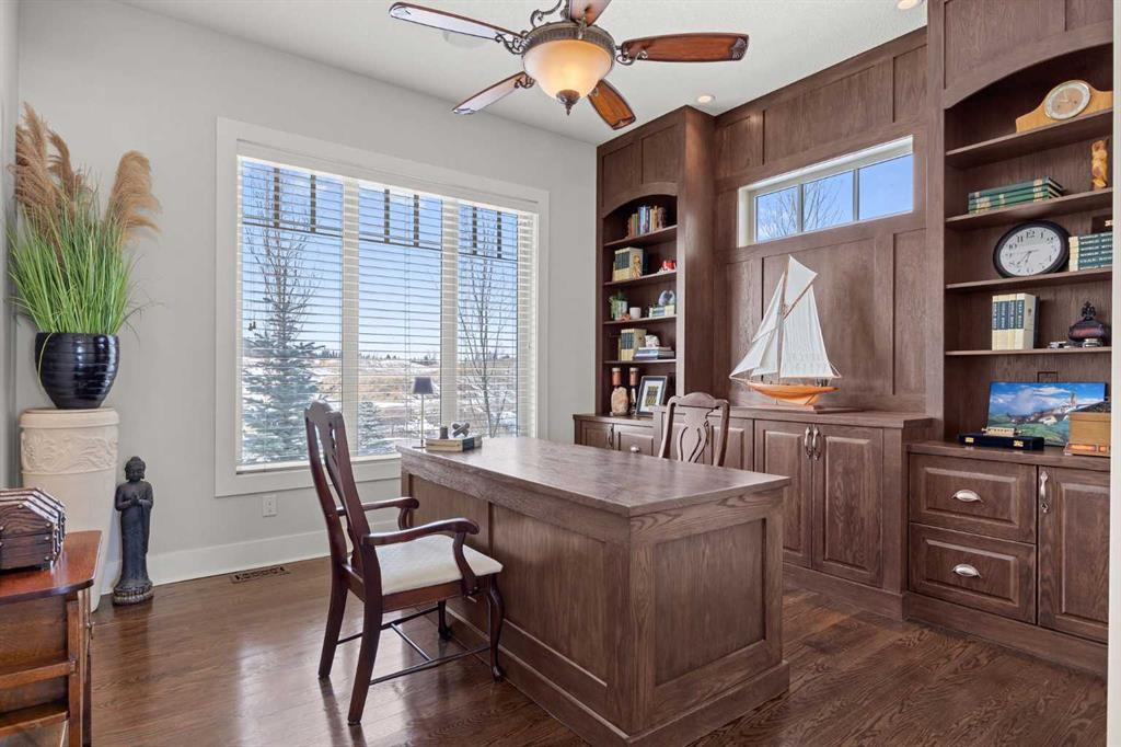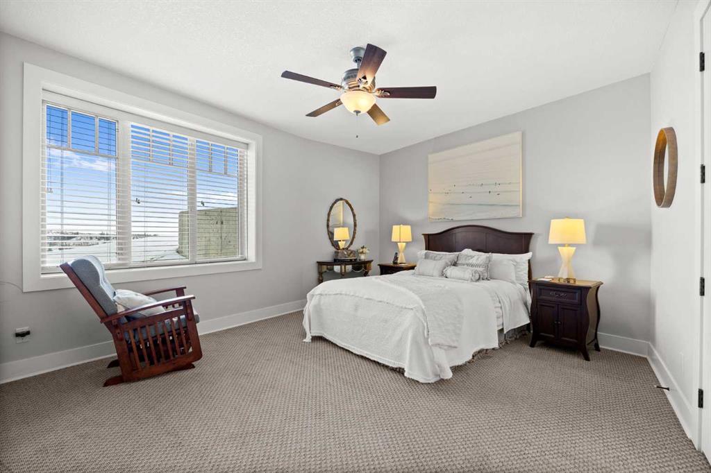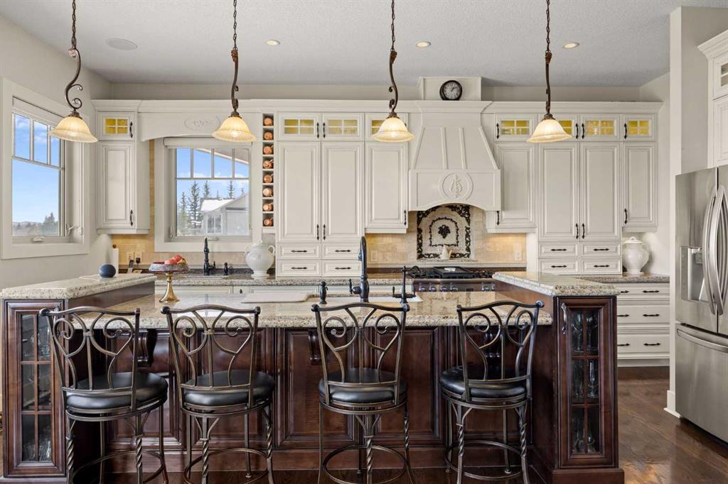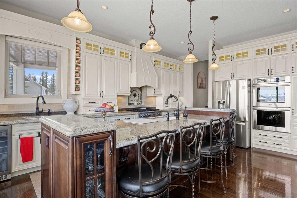 Perfectly positioned along the ridge in Emerald Bay, this custom-built walkout bungalow captures sweeping, unobstructed views of the Bow River and Rocky Mountains. Set on a quiet cul-de-sac, the home offers a rare combination of privacy, elevation, and a constantly changing natural backdrop.