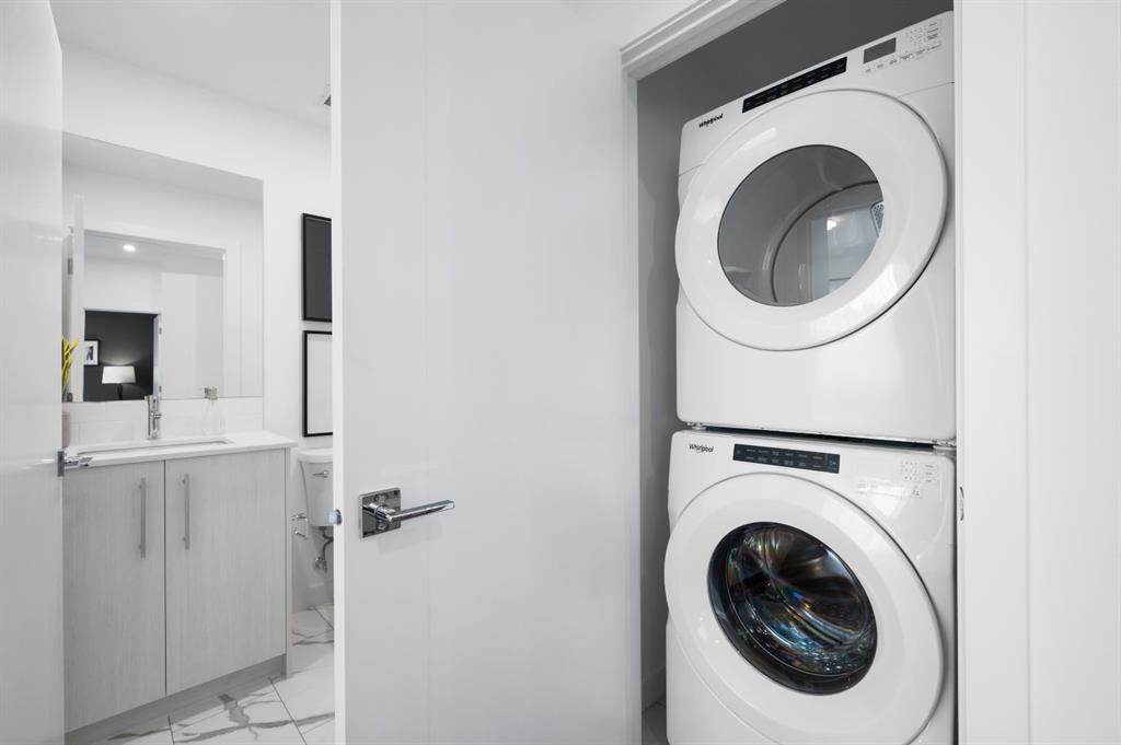 Inside, you’ll find a bright and airy open-concept layout designed for modern living. The kitchen stands out with full-height cabinetry, soft-close doors and drawers, quartz countertops, and a sleek stainless steel appliance package. The living area opens to your private balcony, giving you the perfect space to unwind at the end of the day.