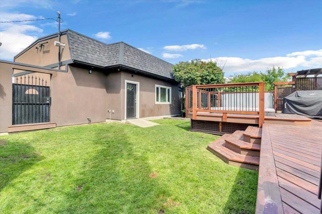 Click brochure link for more details** Professionally renovated home with two upstairs bedrooms, four-piece bathroom, new heat pump with AC, and LVP flooring throughout main areas. Bedrooms feature pre-finished hardwood, with a modern kitchen boasting side-by-side fridge, dishwasher, and double oven with glass cooktop. Sound system wired through upstairs, deck, and 850-square-foot triple car garage with heated slab, 13-foot ceilings, and RV parking behind an eight-foot privacy wall with lockable custom gate. Legal basement suite, professionally done, with separate entrance, four-piece bathroom, stackable washer-dryer, porcelain tile in entrance, bathroom, and kitchen, plus fridge, stove, dishwasher, hardwood living room, one bedroom with walk-in closet and under-stair storage, and large egress windows for plenty of light. Fully fenced yard with underground sprinklers and large upper-level deck with eight-person hot tub and privacy walls. House and garage feature acrylic stucco exteriors. Too many amenities to list.