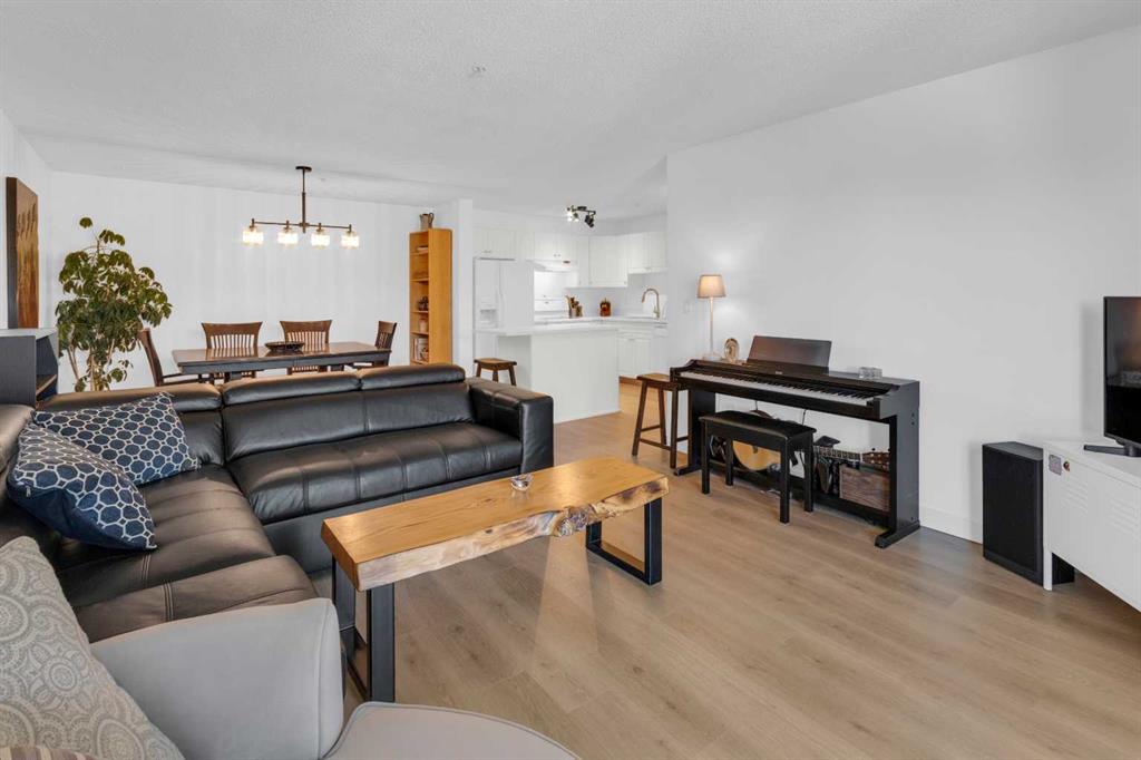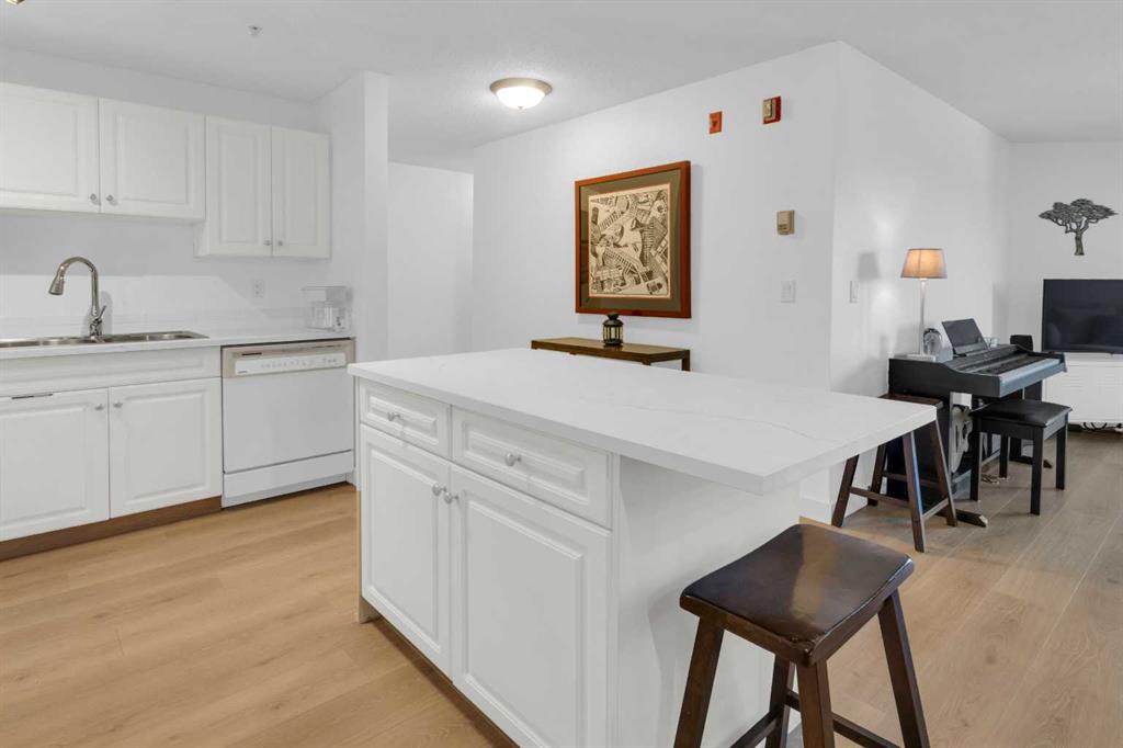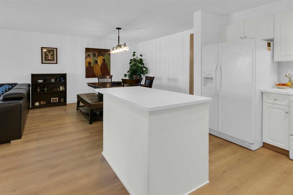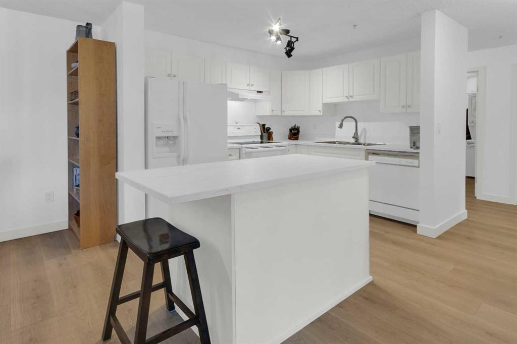 This bright and inviting two-bedroom, two-bathroom condo features new flooring throughout and an ideal open main area layout that feels welcoming from the moment you step inside. The kitchen is both functional and generous, with ample cabinetry and counter space, a convenient breakfast bar, and seamless flow into the spacious dining area perfect for everyday living and entertaining.