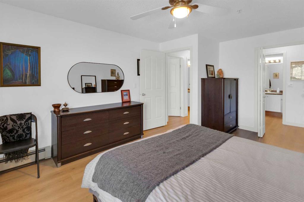 The large primary bedroom offers a comfortable retreat with a walk-through closet and private four-piece ensuite. A very well-sized second bedroom provides flexibility for guests or a home office and is conveniently located next to the main four-piece bathroom.