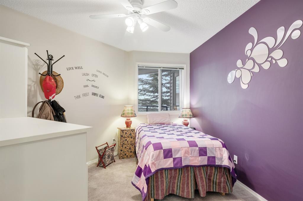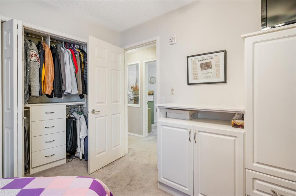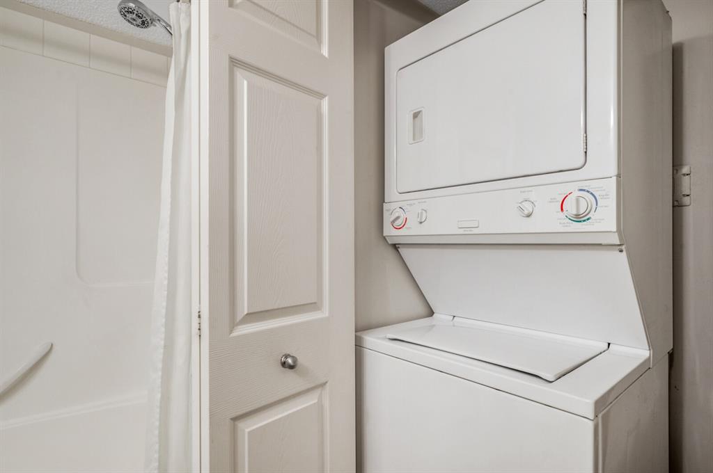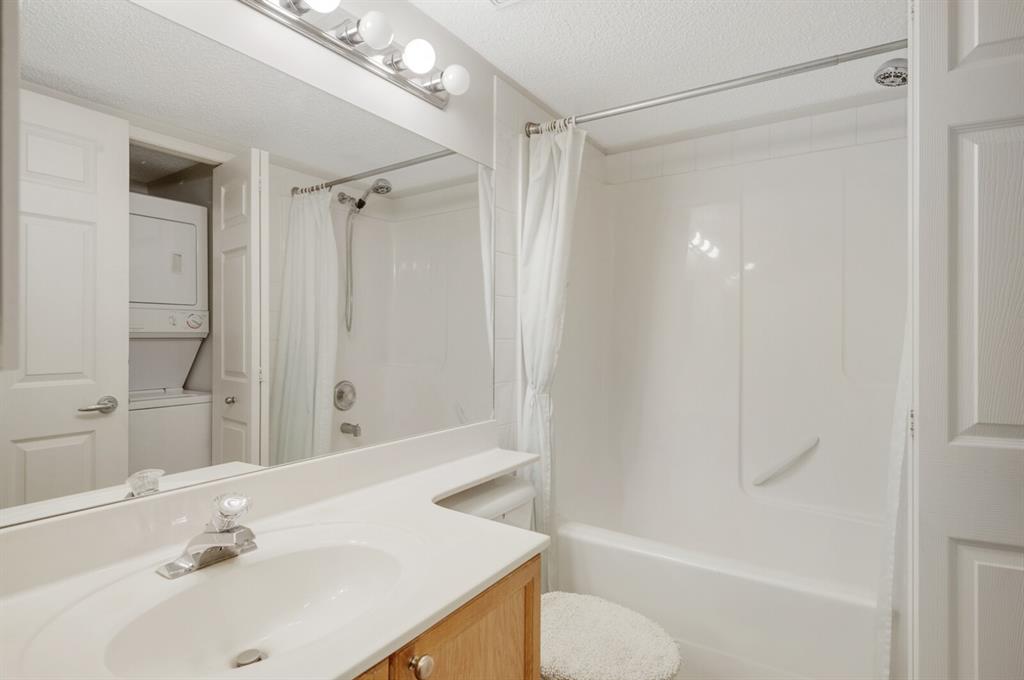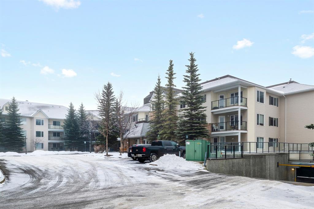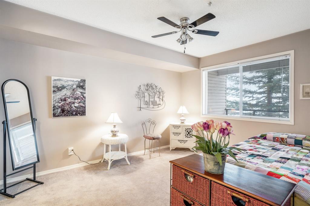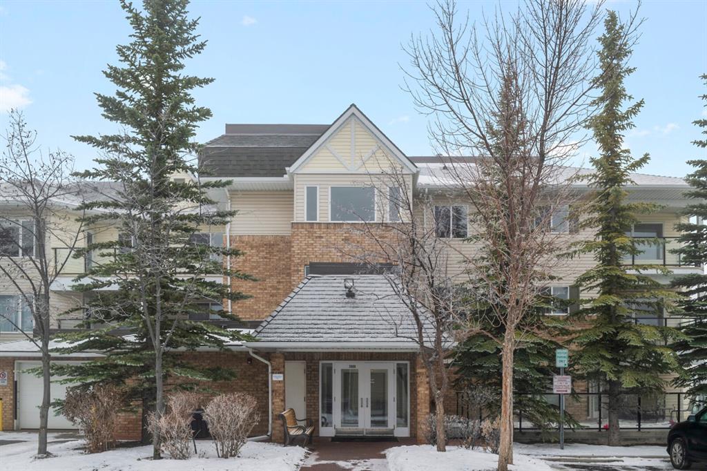 Welcome to this 2 bedroom plus den 2 bathroom in sought after Arbour Lake Landing. Note the pride of ownership as you enter. This home boasts an open kitchen with raised eating bar, dining area and large living room. The living area opens out to the spacious and very private deck (11’2″x7’8″) nestled in the evergreens. The master bedroom has a large walk-in closet with beautiful built in shelving with organizer and 3 piece en suite with shower. The second bedroom offers a custom built in cupboard in addition to a closet organizer. Enjoy additional space in the den or flex room with glass window allowing light to flood the den from the hallway. A four piece bath finishes this area There is an underground assigned parking space #262 conveniently located close to the elevator, storage locker #30, bike rack, along with exercise/amenities room located off the parkade just steps from the elevator. Close to all amenities including: Arbour Lake offering boating, swimming, paddle boarding, kayaking, skating and tennis, pickleball & tennis courts (your HOA allows you access to Arbour Lake), Crowfoot Center with shopping and restaurant, YMCA, and c-train.
