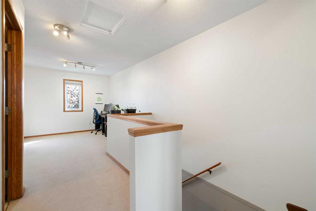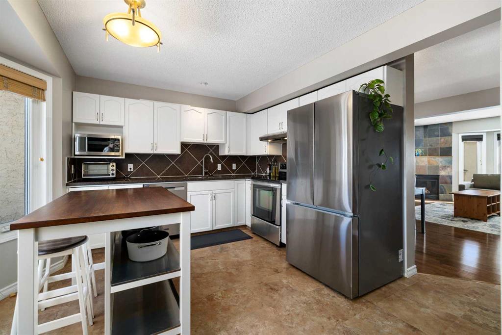 Stylish, Spacious & Perfectly Located in sought-after Christie Park Mews. Enjoy effortless townhouse living in this well maintained 1,348 sq ft two-storey offering 2 bedrooms plus a versatile loft. The main floor welcomes you with a bright, open-concept layout designed for both comfort and entertaining. The spacious living room features a contemporary slate-faced gas fireplace and offers plenty of flexibility for furniture placement. Seamlessly connected, the generous dining area easily accommodates gatherings with family and friends. Engineered hardwood flooring, adding warmth and continuity. The sunny, west-facing kitchen is both functional and inviting, complete with Granite countertops, white painted cabinetry, striking backsplash, stainless steel appliances (including a 2025 FRIDGE), and a convenient island for prep, storage. You’ll also find the convenience of main floor laundry (WASHER & DRYER 2025) and a powder room, along with direct access to a composite west-facing deck—perfect for evening BBQs. Upstairs, the spacious primary suite comfortably accommodates a king-sized bed and features a private 4-piece ensuite. A second bedroom and a flexible loft area—ideal for a home office or reading space—complete the upper level. The entry level offers additional functionality with access to a heated single garage with shelving to the rear, a bonus hobby or workout room, mechanical area with new FURNACE 2025, and extra storage—often referred to as the basement level. This well-managed, pet-friendly complex (with board approval) also features NEW TRIPLE-PANE WINDOWS for added comfort and efficiency. Location is exceptional— pathways & just a short walk to the LRT and West Market Square, Westhills shopping with a wide array of shopping, dining, and everyday amenities and services. You’ll also enjoy quick access to schools, Westside Recreation Centre, Sarcee Trail, and Bow Trail. Comfort, convenience, and community in this warm, inviting Christie Park townhouse!