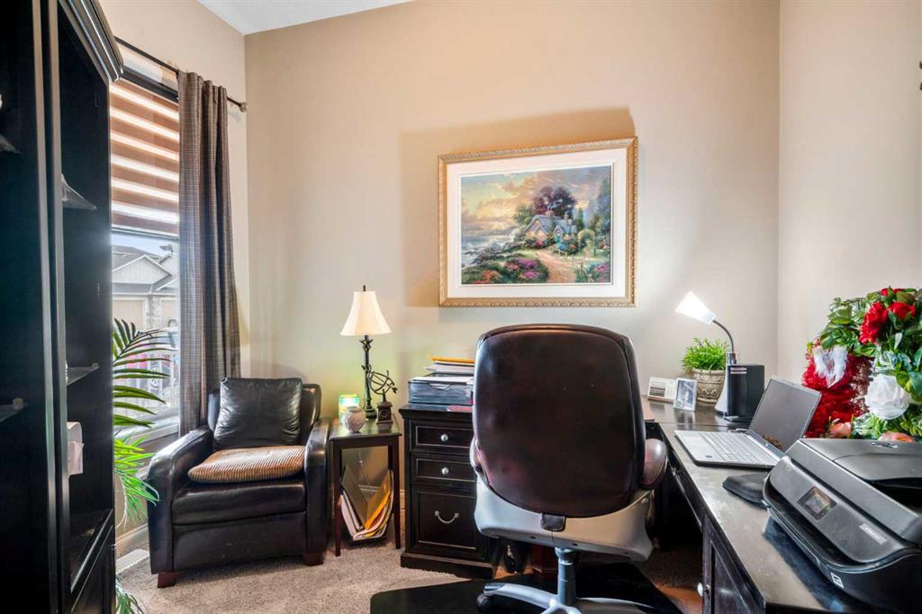 ***OPEN HOUSE THIS SATURDAY, FEBRUARY 14th, FROM 12-3PM*** Welcome to 223 Sunset Square in the picturesque community of Sunset Ridge, a home that blends comfort, style, and convenience. Ideal for those seeking retirement living or the ease of main-floor living, this thoughtfully designed property offers an open-concept layout that feels both spacious and inviting. When you walk into the home you are greeted by a lovely office that features a large window for long days of working from home. The kitchen is a standout feature, complete with granite countertops, stainless steel appliances, and a beautifully finished island with stone facing that comfortably seats three or more. It flows seamlessly into the living area, where a gas fireplace with a stunning natural stone surround creates a warm and elegant focal point for relaxation or entertaining. The main-floor primary bedroom is generously sized and features a walk-in closet and a luxurious 5-piece ensuite with a large soaker tub, glass shower, and double vanity with granite countertops. You’ll also appreciate the main-floor laundry room with added storage, conveniently located just off the oversized double attached garage. Upstairs, a versatile loft overlooking the main level provides a lovely formal sitting area, along with a second bedroom and a 3-piece bathroom making it perfect for guests or visiting family who want their own private space. The basement is ready for the next owners creative mind and comes with bathroom rough ins as well as ROUGHED IN IN-FLOOR HEATING! Sunset Ridge is known for its beautiful mountain views, scenic walking trails around the central pond, nearby schools, and numerous parks. The neighbourhood offers a peaceful lifestyle while still being family-friendly and connected to amenities. Whether you’re downsizing, retiring, or simply looking for the convenience of main-floor living with extra space for guests, this home checks all the boxes. Book your showing today!