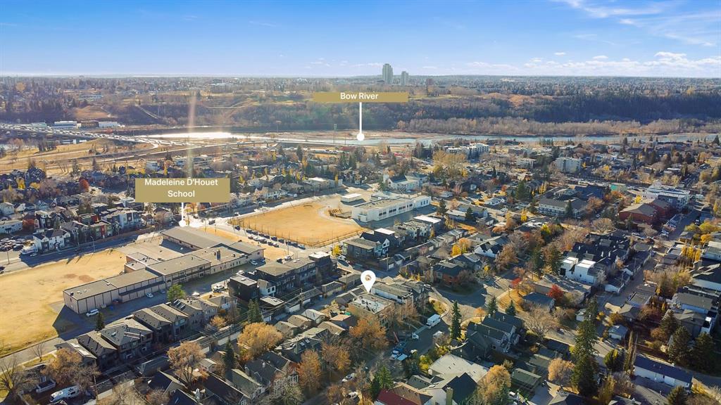 Walk to neighbourhood parks for quick dog runs & fresh air. Schools are excellent here – Hillhurst School for K-6, Queen Elizabeth Junior High & Senior High just up the road, & William Aberhart High School for advanced academics & sports programs. Weekend coffee, local bakeries, & casual dining are all within minutes, & downtown is an easy commute by car, bike, or transit. River pathways make a perfect loop for a jog or sunset stroll. It’s the right mix of community feel & city access.