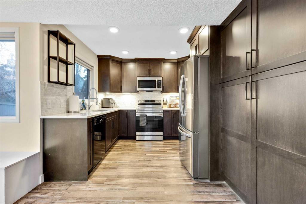 QUITE CUL-DE-SAC l STEPS AWAY FROM WALKING PATHS/OFF LEASH DOG PARK l NEWER HWT/FURNACE/ROOF l Welcome to this beautifully updated 4-bedroom, 2.5-bathroom home offering over 2,830 sq ft of total living space in the desirable community of MacEwan Glen. Location truly is everything! Tucked away on a quiet cul-de-sac just two doors down from MacEwan Ridge Park and its extensive pathway system connecting to Nose Hill Park and Hidden Valley Off Leash Area. This is an unbeatable setting for dog owners or walking enthusiasts alike, step outside to endless walking paths, open green space, and convenient off-leash adventures just moments from home. The main floor features a spacious dining room with vaulted ceilings and an elegant Juliet overlook from the staircase. The layout flows seamlessly into the inviting living room, complete with a cozy wood-burning fireplace for those chilly evenings. At the rear of the home, you’ll find a brand-new kitchen showcasing quartz countertops, stainless steel appliances, ceiling-height cabinetry, and a bright breakfast nook with access to the west-facing deck and low maintenance backyard, ideal for summer BBQs and soaking up the sun. New luxury vinyl plank flooring runs throughout the main level, which also includes a convenient half bath and laundry room. Upstairs offers three generously sized bedrooms, a full bathroom, and a primary retreat featuring a large soaker tub in the ensuite. The fully finished basement completes the home with a spacious rec/media room perfect for movie nights or a billiards setup, along with an additional bedroom, hobby room, and a large utility room providing plenty of extra storage. Don’t miss your opportunity to call this exceptional home yours, book your private showing today!