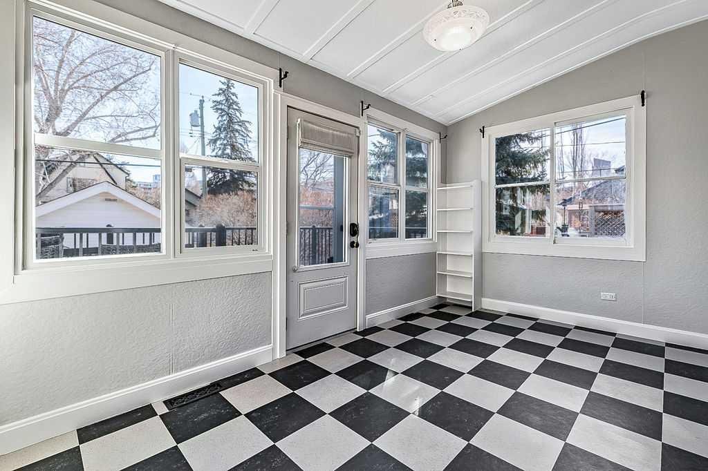 Charming bungalow on one of Calgary’s best streets! Nestled on a picturesque, tree-lined street, this delightful bungalow is brimming with character and modern updates. From the moment you arrive, the inviting front porch welcomes you into a home that perfectly blends vintage charm with contemporary comfort. Step inside to spacious rooms, soaring high ceilings, and hardwood floors, creating a warm and inviting atmosphere. The east-facing, four season heated sunroom offers pretty city views, your perfect spot for morning coffee, no matter the season. The stunning kitchen is a true showstopper, featuring ceiling-height cabinetry, an abundance of counter and storage space, and a striking red Fulgor stove that feels more like an art piece than an appliance. A quaint island with included stools completes this cozy yet highly functional space. The gorgeously remodeled 4-piece bathroom is thoughtfully designed, while the partially developed basement provides additional living space with a family room, bedroom, and a 2-piece bathroom, ideal for guests or extra relaxation. This freshly painted, move-in-ready home boasts solar panels, mature landscaping, some updated plumbing & electrical, and a newer high-end Sync furnace/water heater combination for ultimate comfort. Some newer windows enhance efficiency while preserving the home’s timeless appeal. All of this is just steps away from Calgary’s finest restaurants, boutique shops, and exercise studios, making it the perfect location for those who love to be at the heart of it all. If you’re searching for a quaint and charming bungalow with the perfect mix of character and modern convenience, this is the one!
