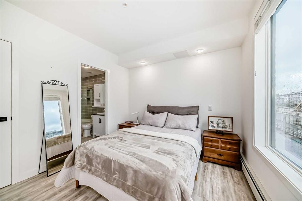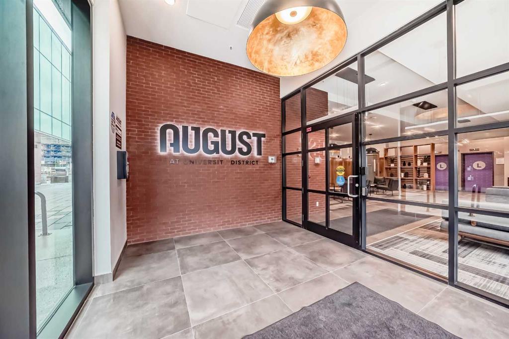 Welcome to this stylish and beautiful 2-bedroom, 2-bathroom condo in the sought after NW community of University District! This modern condo has been thoughtfully designed with an open-concept layout featuring premium vinyl plank flooring throughout, creating a seamless flow between living spaces. The primary bedroom is generously sized and features a 3-piece ensuite with larger shower and a walk-in closet. A second bedroom is situated on the other side of the unit which can also be used as an office and has a four-piece bathroom across from it. The functional kitchen boasts stainless steel appliances, gas stove, full-height white cabinetry, quartz countertops and a built-in pantry providing lots of storage. The living room opens up to the dining room with a large balcony extending the indoor space for entertaining guests. This desirable corner unit condo allows lots of natural light to flow through it showcasing large windows in almost every room. The in-suite laundry with extra room for storage provides added convenience. The August building offers an impressive array of amenities including a roof-top deck, party room and lounge as well as a car wash in the secure underground area. This unit also comes with a titled underground parking spot and an oversized storage unit, providing exceptional value to this home. This pet-friendly building is also located in one of the most desirable locations in NW Calgary — steps away from all the amenities one could desire, including Save-On-Foods, Shoppers Drug Mart, Cineplex Theatre, Market Mall and an array of restaurants and coffee shops. This location is ideal for professionals working nearby or studying at the University of Calgary, empty-nesters, investors or anyone seeking a modern, urban lifestyle with easy access to major routes and transportation hubs. Book your private viewing now before this spectacular condo is sold!