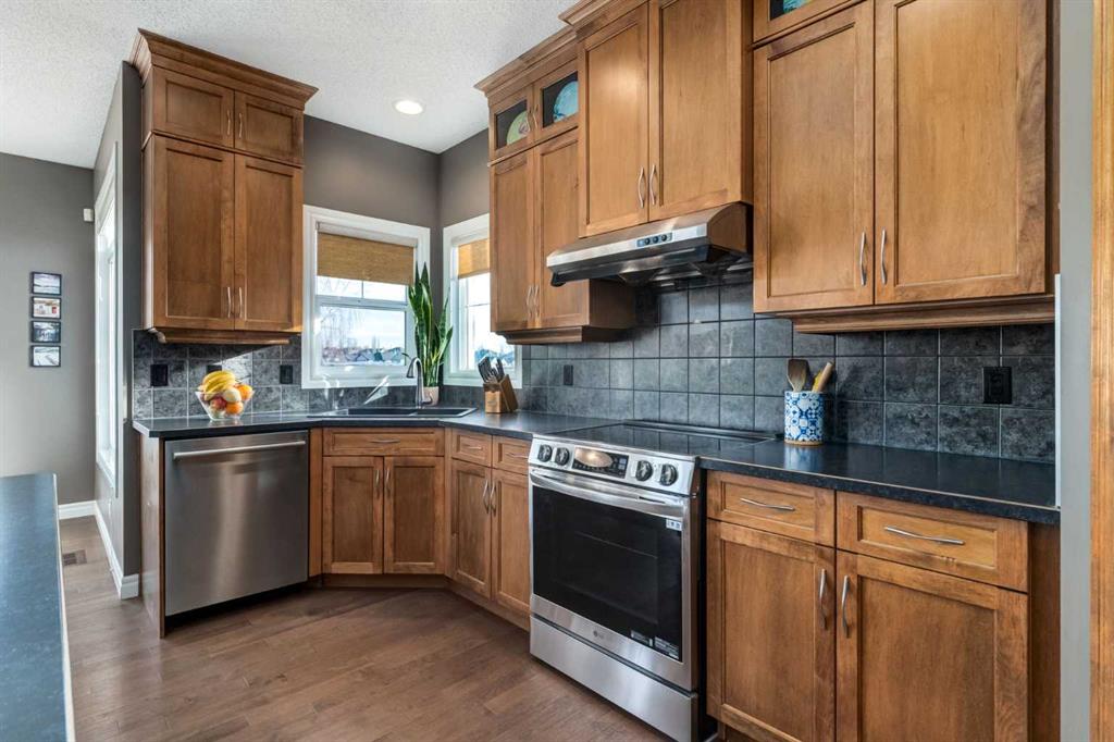 Welcome to this exceptional estate residence in the highly coveted community of Tuscany — where refined living meets timeless sophistication. Flooded with natural light, this beautifully designed home showcases an inviting open floor plan, rich maple hardwood flooring, and a spacious main-floor den ideal for a private office or library. The gourmet Chef’s kitchen is a true showpiece, featuring full-height cabinetry, premium stainless steel appliances, and an expansive island with a stylish eating bar—perfect for both everyday living and upscale entertaining. Upstairs, discover an impressive bonus room adorned with custom-built-ins, including two desks for a work-from-home space, along with three generous bedrooms. The luxurious primary suite is a serene retreat, complete with a large walk-in closet and a spa-inspired ensuite offering dual vanities, an oversized glass shower, and a deep soaker tub designed for ultimate relaxation. The fully finished lower level extends your living space with two additional bedrooms, a chic 3-piece bathroom, and a beautifully crafted recreation room—ideal for movie nights, fitness, or guests. Step outside to your private outdoor oasis, where mature landscaping frames a stunning backyard featuring an aggregate patio, low-maintenance Trex decking, and an amazing firepit area. It’s the perfect setting for elegant gatherings, summer BBQs, or peaceful evenings under the trees. Situated on a quiet, well-appointed street, this premier corner lot location offers the convenience of walking to schools, boutique shopping, Starbucks, scenic ravines, and miles of pathways—all while providing quick access to the LRT and major routes. This is more than a home—it’s an elevated lifestyle, crafted for discerning families and those who love to entertain. OPEN HOUSE SUNDAY JAN. 18TH 1:00-4:00!!