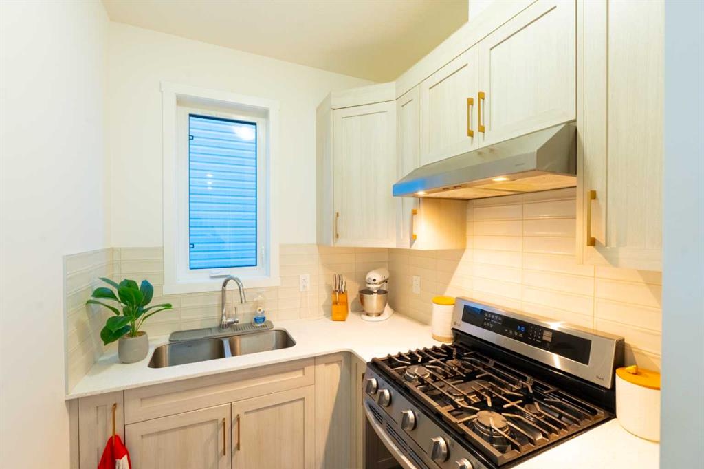 The kitchen is the true showpiece of the home. A custom oversized quartz island with elegant curved edges creates a softer, more organic flow than traditional rectangular islands, making it the perfect gathering space for entertaining, casual dining, or hosting family and friends. The island is finished with matching cabinetry panels for a refined, built-in furniture look and offers generous seating and prep space. The kitchen is further enhanced with full-height cabinetry, sleek built-in appliances, stainless steel finishes, and a clean modern aesthetic. A separate spice kitchen adds exceptional functionality — ideal for keeping the main kitchen immaculate while preparing meals. A dedicated main floor office provides valuable flexibility for remote work or study.