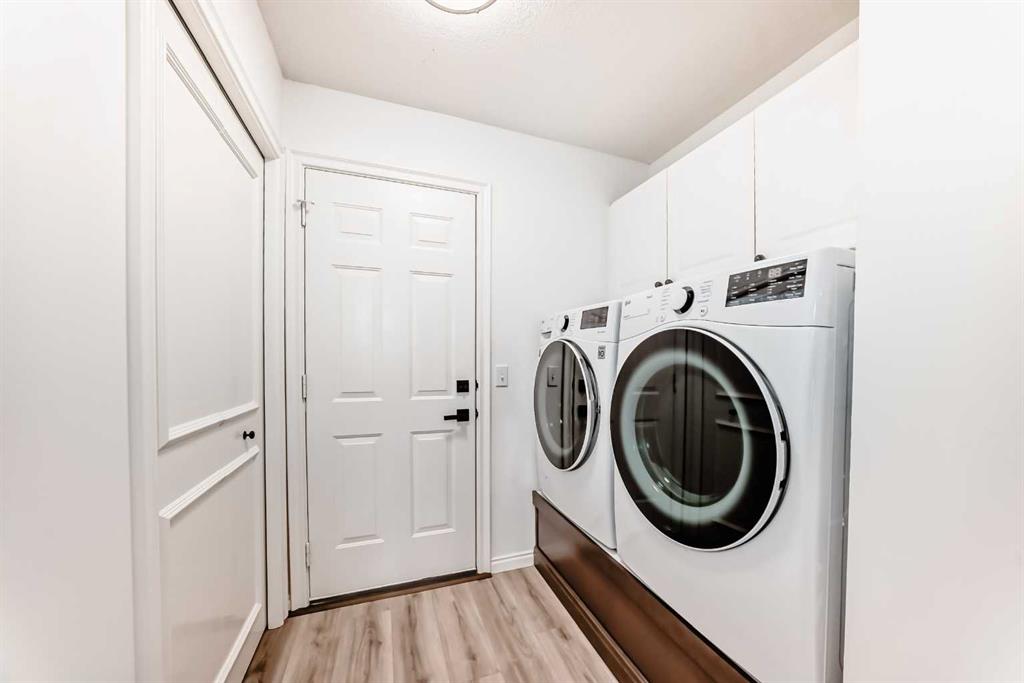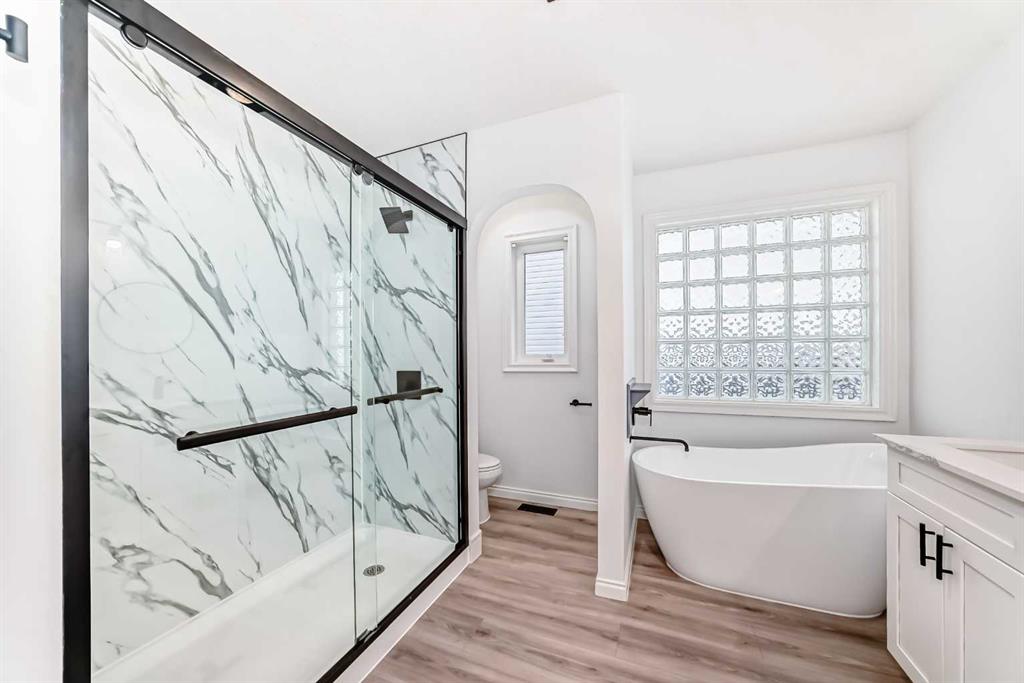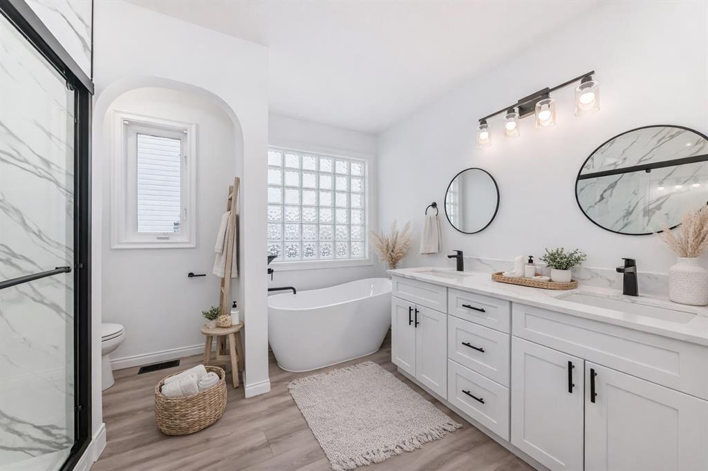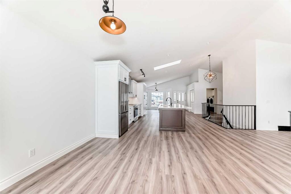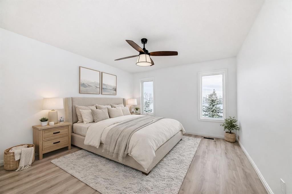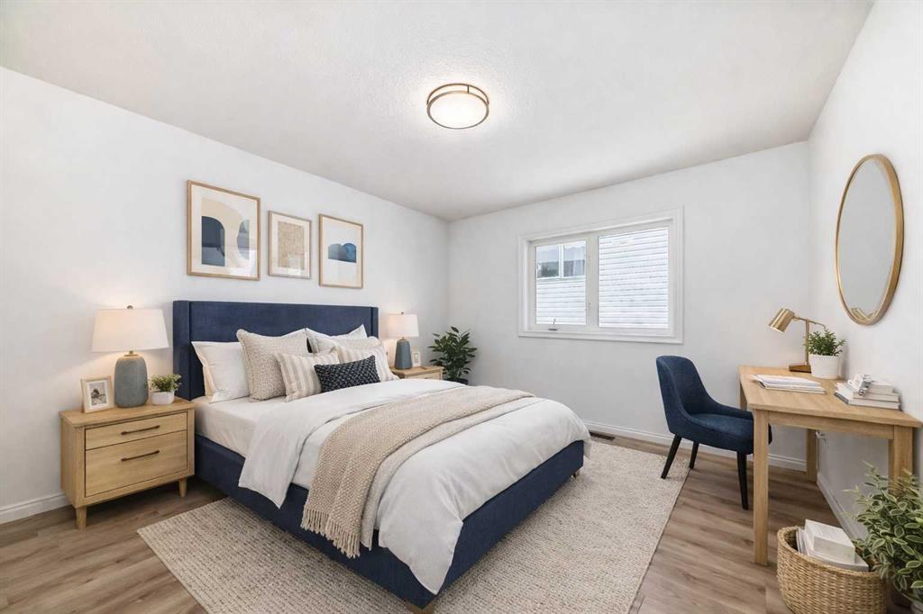 The primary bedroom offers a private retreat with a walk-in closet and a beautifully updated 5-piece ensuite. A second bedroom, full bathroom, and convenient main-floor laundry complete this level.
