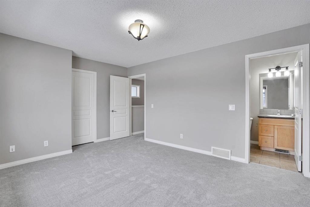Welcome to this beautiful detached home in the vibrant community of Reunion, offering comfort, space, and endless potential for you to make it your own. As you approach the home, you’ll immediately appreciate the large covered front porch, perfect for relaxing on warm summer evenings. Step inside to an inviting open-concept layout featuring a spacious living room highlighted by a large window that fills the space with natural light. brand new vinyl plank flooring and new carpet throughout the house elevates the home. The kitchen offers a functional design with a generously sized pantry and ample space for a dining table, making it ideal for everyday living and entertaining. The main floor is complete with a convenient half bathroom, perfect for guests or for freshening up before dinner. Upstairs, you’ll find two spacious secondary bedrooms, a full bathroom, and a conveniently tucked-away laundry area. The primary bedroom offers a comfortable retreat with its own private ensuite, perfect for busy mornings. The basement features a large bedroom that can easily accommodate growing families or be transformed into a theatre or recreation room. A generously sized bathroom space in the basement offers excellent potential and flexibility for future customization. Step outside to enjoy the beautifully sized deck overlooking a massive backyard, ideal for outdoor gatherings, kids, or pets. Situated on a 30-foot-wide lot, the property already includes a poured concrete pad and is ready for a future detached garage. This is a fantastic opportunity to own a well-laid-out home in a great community with room to grow and personalize.