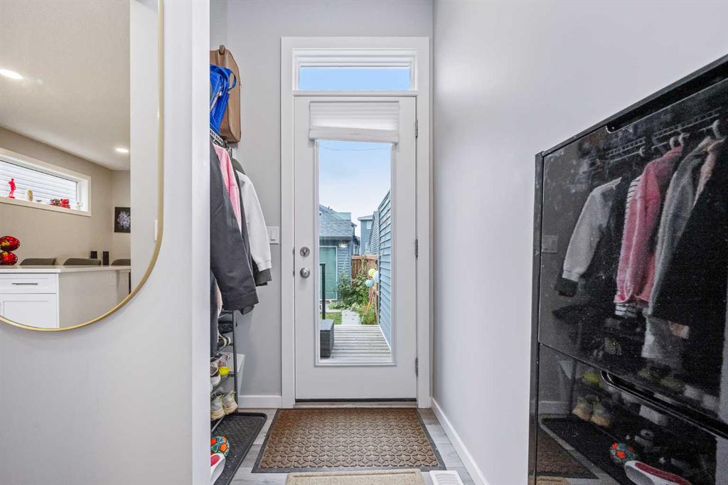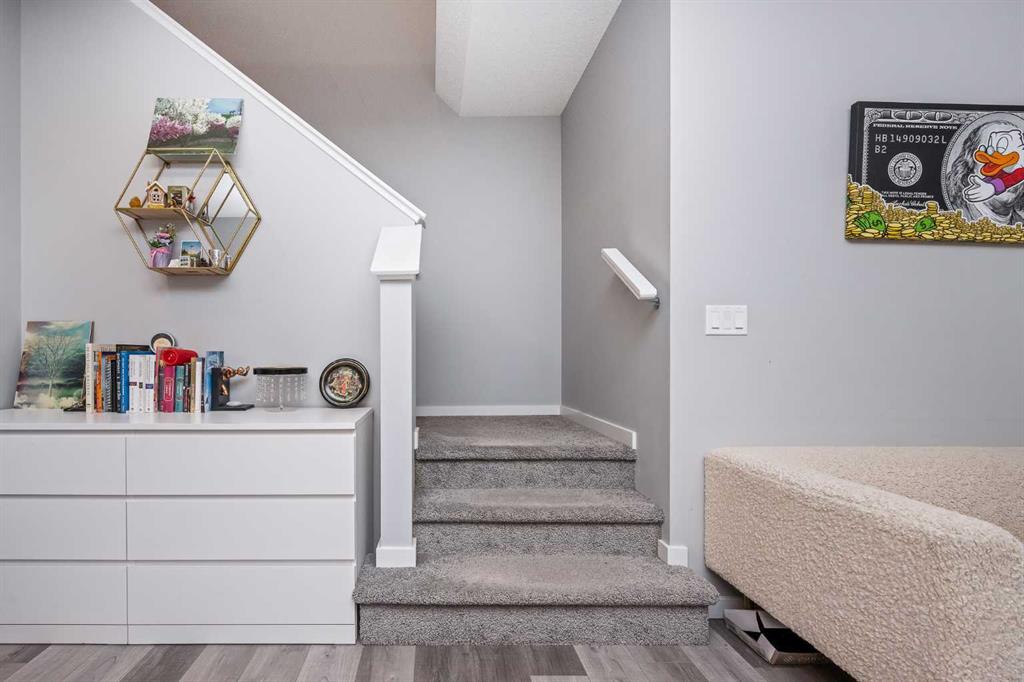 Welcome to this charming 3-bedroom, 2.5-bath duplex offering 1,407 sq. ft. of bright, open living space in the heart of Belmont, SW Calgary. This home features a welcoming front porch, double detached garage, fenced yard with grass, trees, and a deck, plus a painted basement floor ready for future development. Inside, enjoy high ceilings, an open-concept layout, east-facing primary bedroom with a walk-in closet and 3-piece ensuite, and upper-level laundry. A PAX closet system is included. Any furniture from this home can also be purchased separately or as a package.