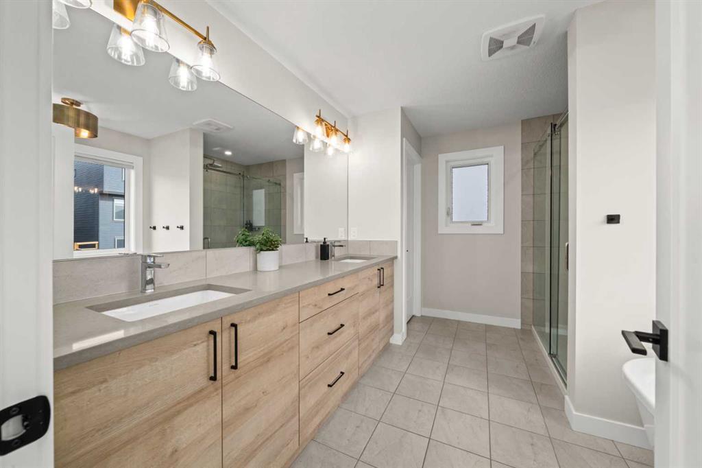 Upstairs, you’ll find three spacious bedrooms, including a well-appointed primary suite with a spa-inspired ensuite showcasing custom tile work and a glass shower.